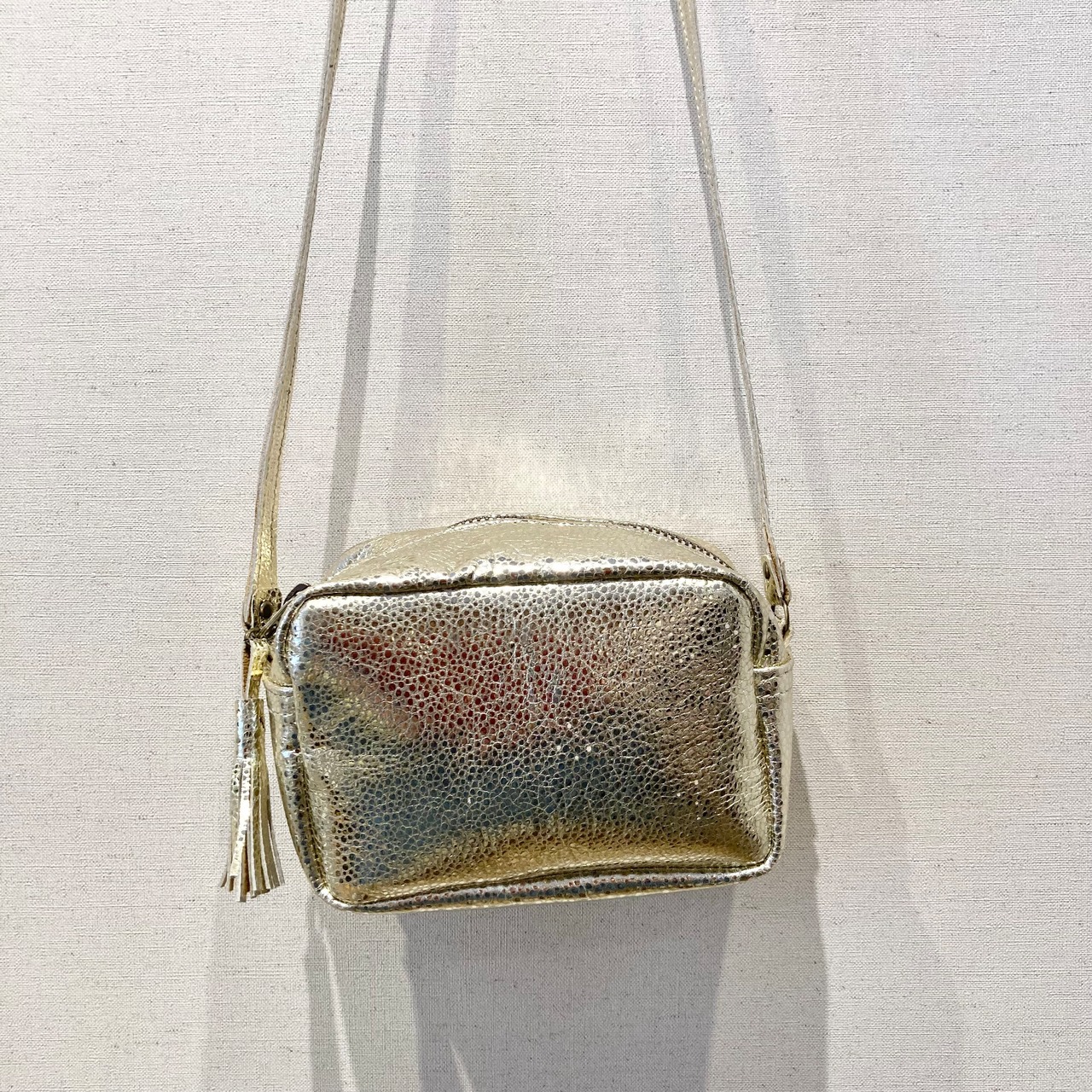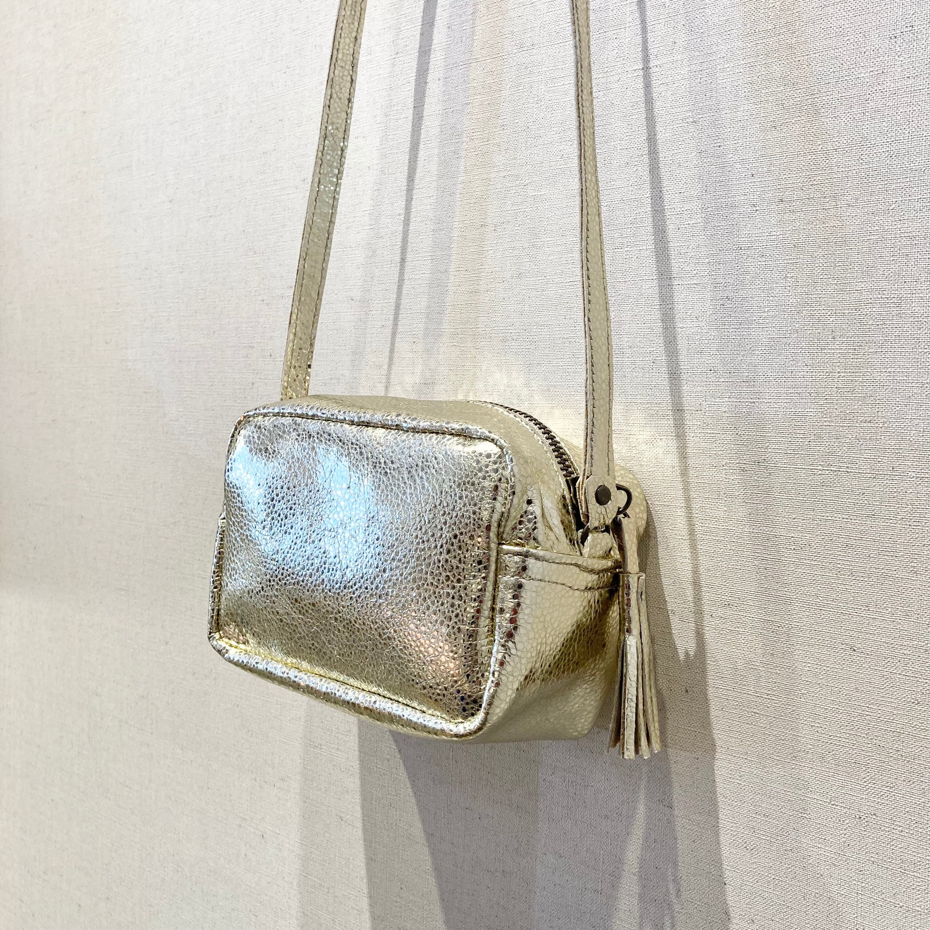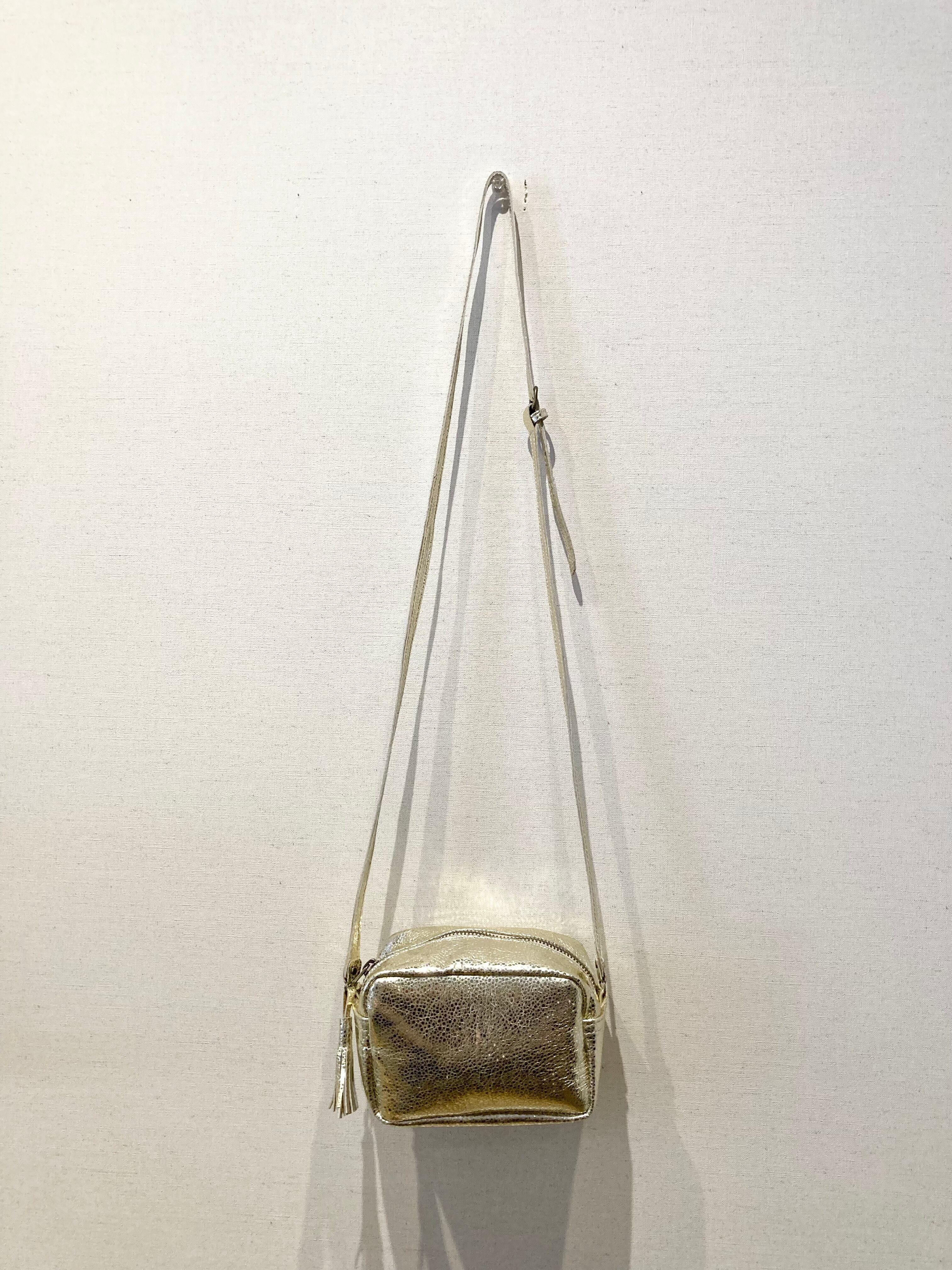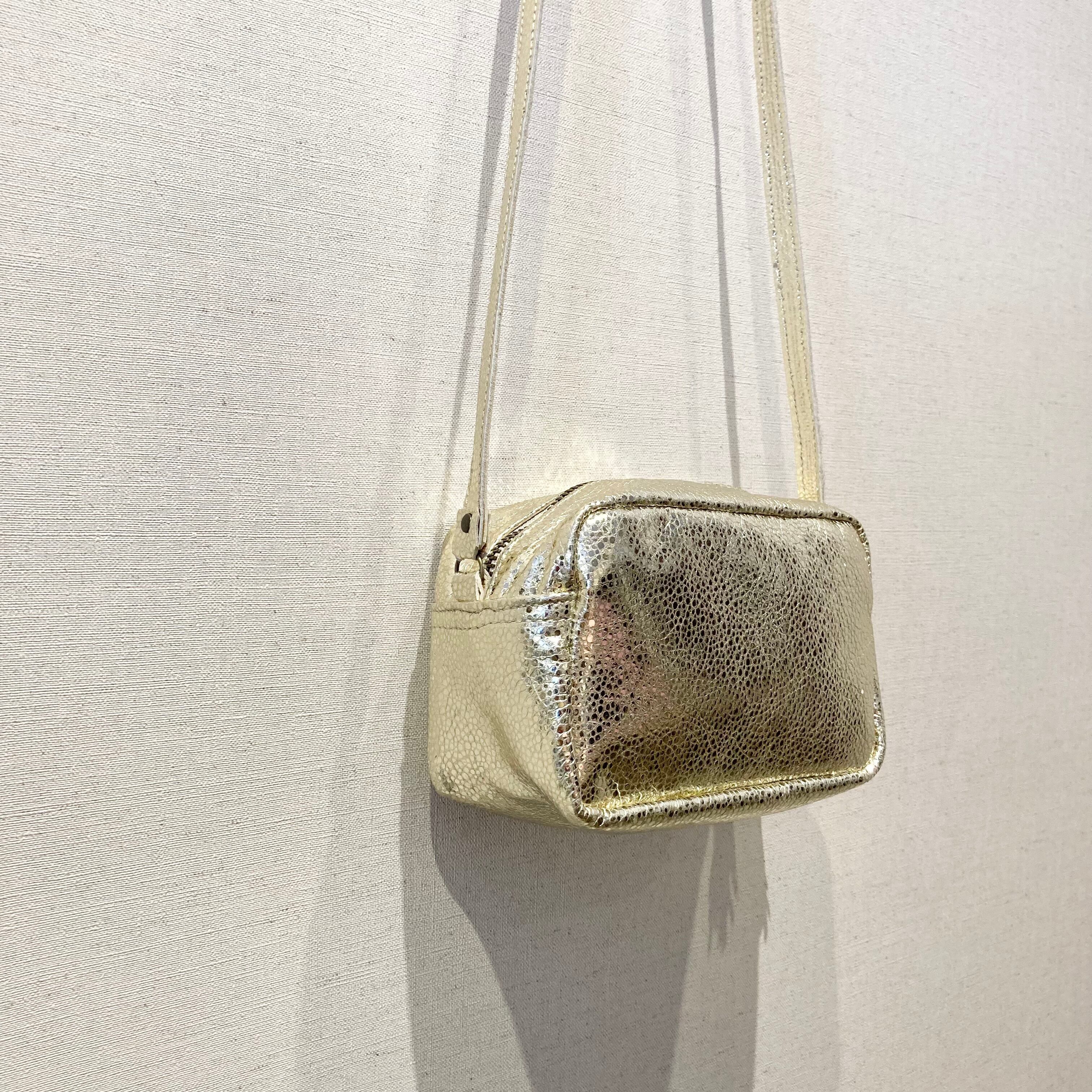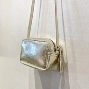 シボのある箔加工山羊革ショルダーバッグ