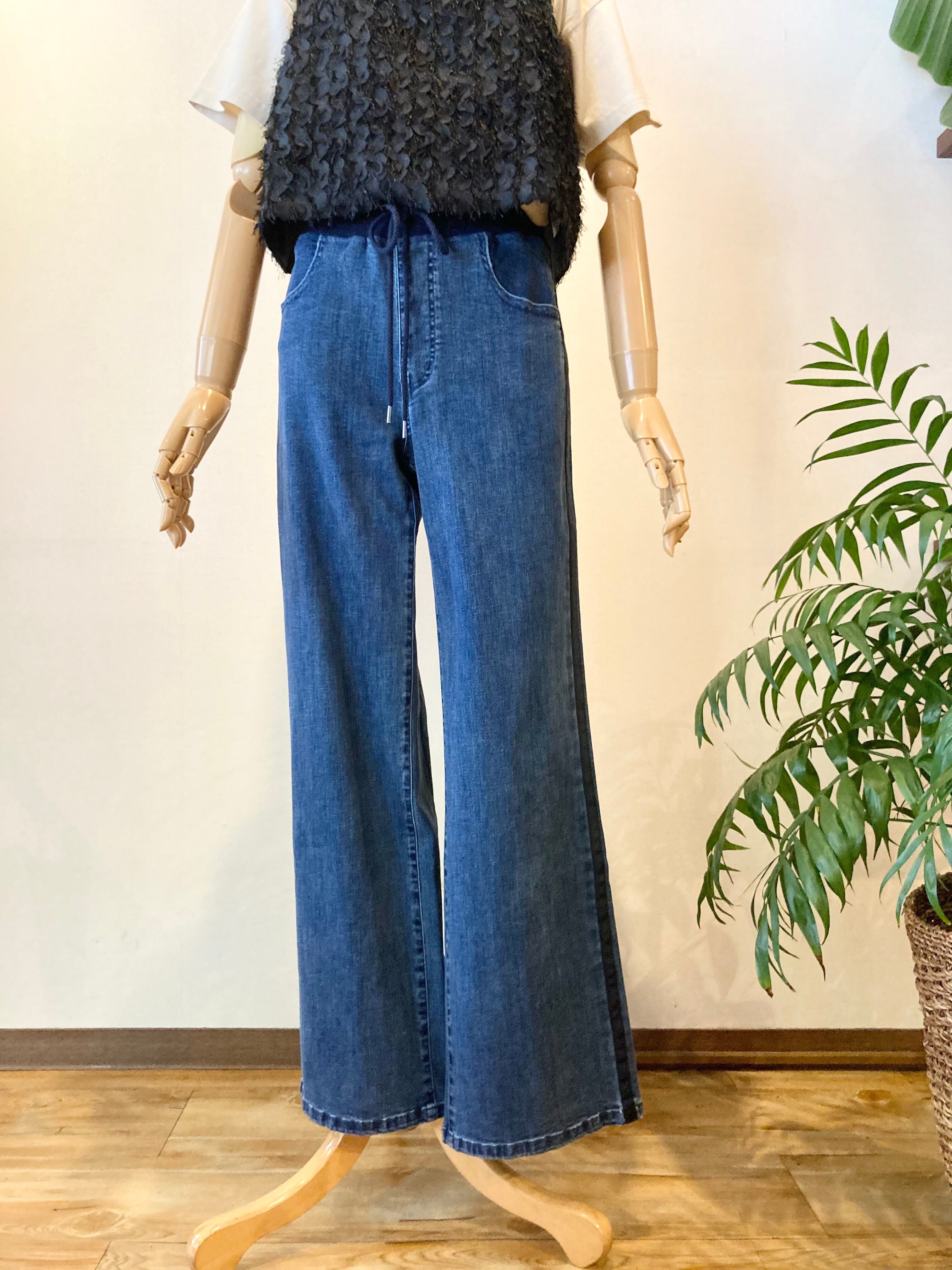 サイドにラインデザインが入ったデニムパンツ…