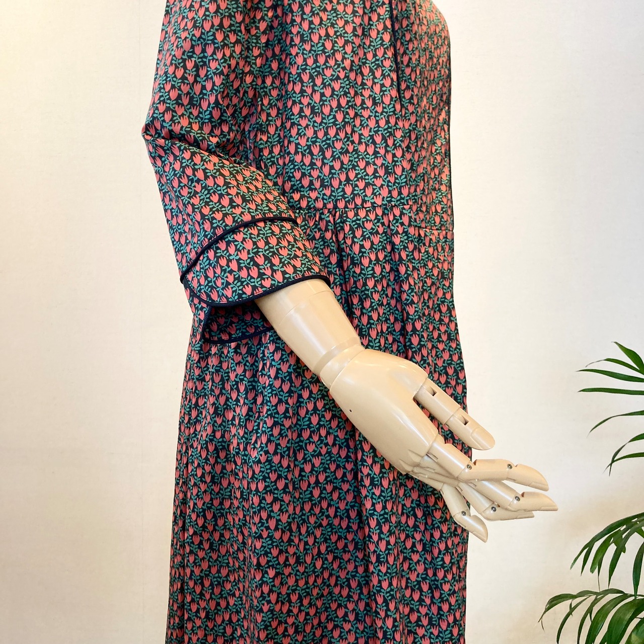 7分袖の袖先はスリットが入りパイピングされています