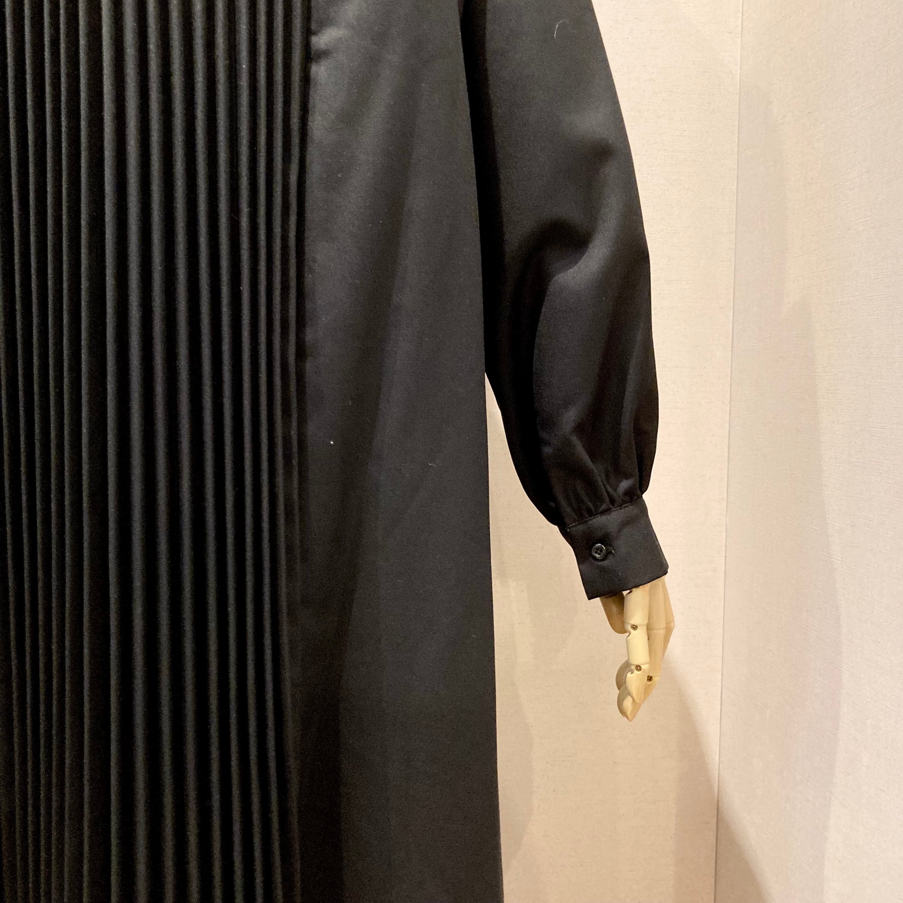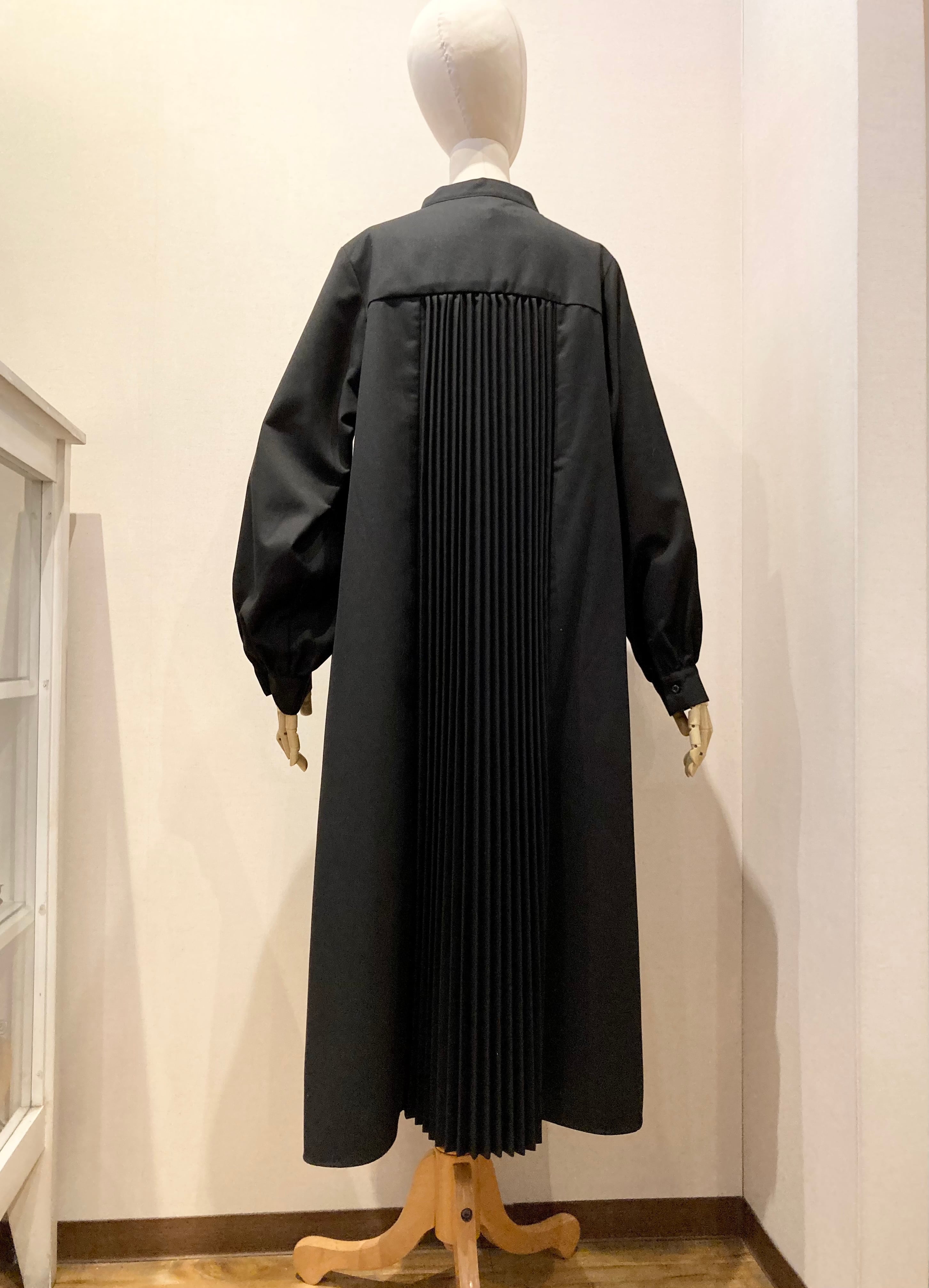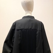 ラペルの様なカッティングを施した襟デザインと後ろ身頃のプリーツデザインが