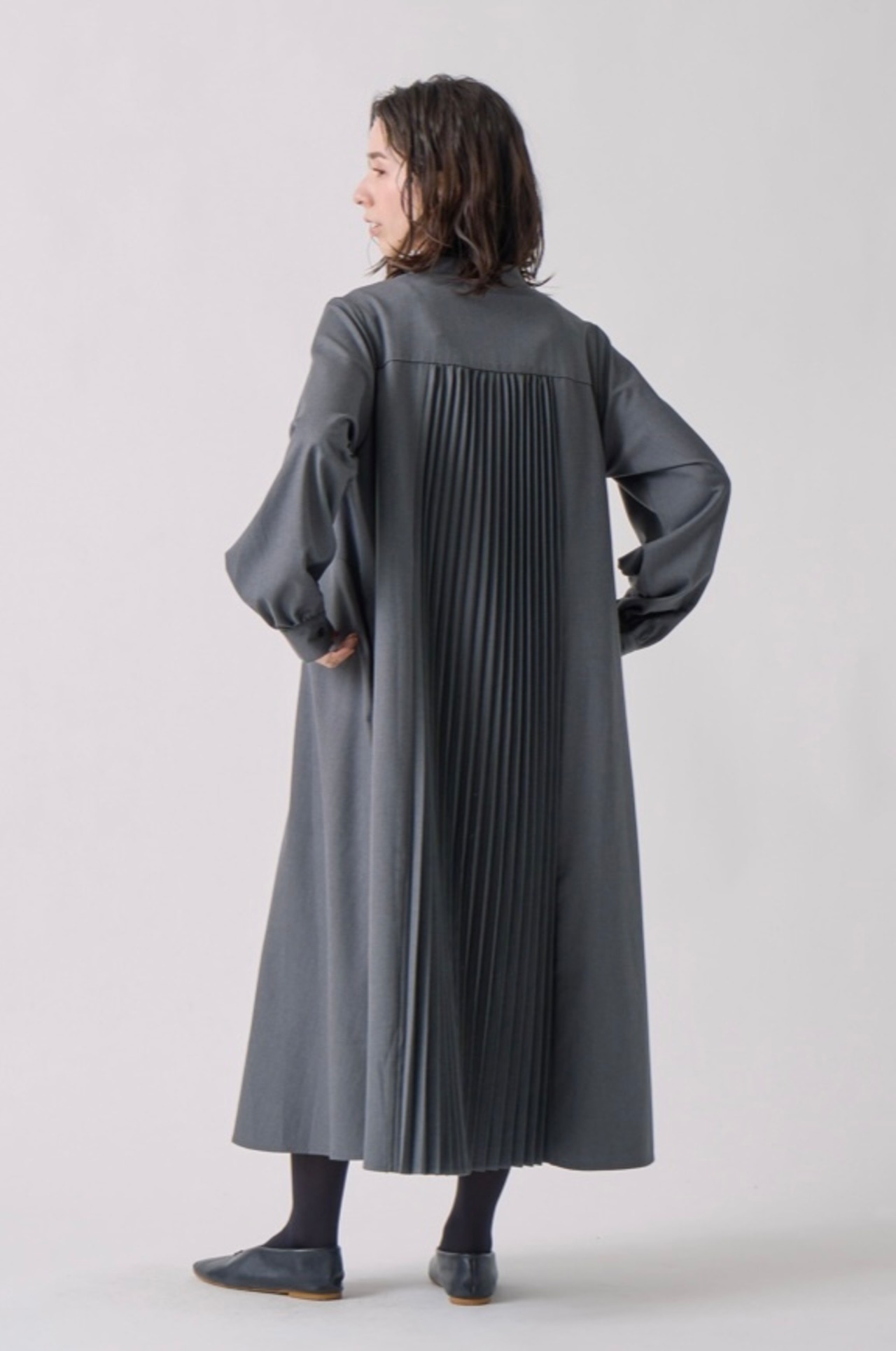動きに合わせてプリーツが揺れて美しいラインを描きます