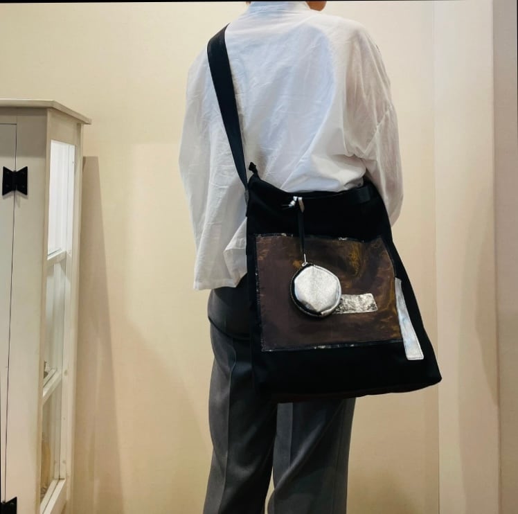 color black x brown(ポケットはbrowngold、silver)ミニポーチはsilver