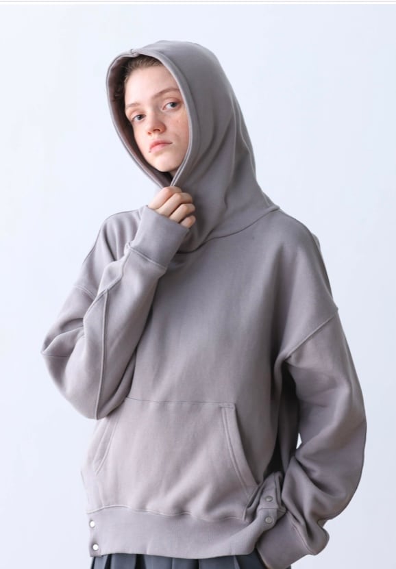 両脇裾のドット釦の開閉でスリットシルエットの変化を楽しめます