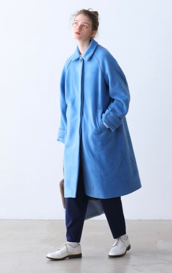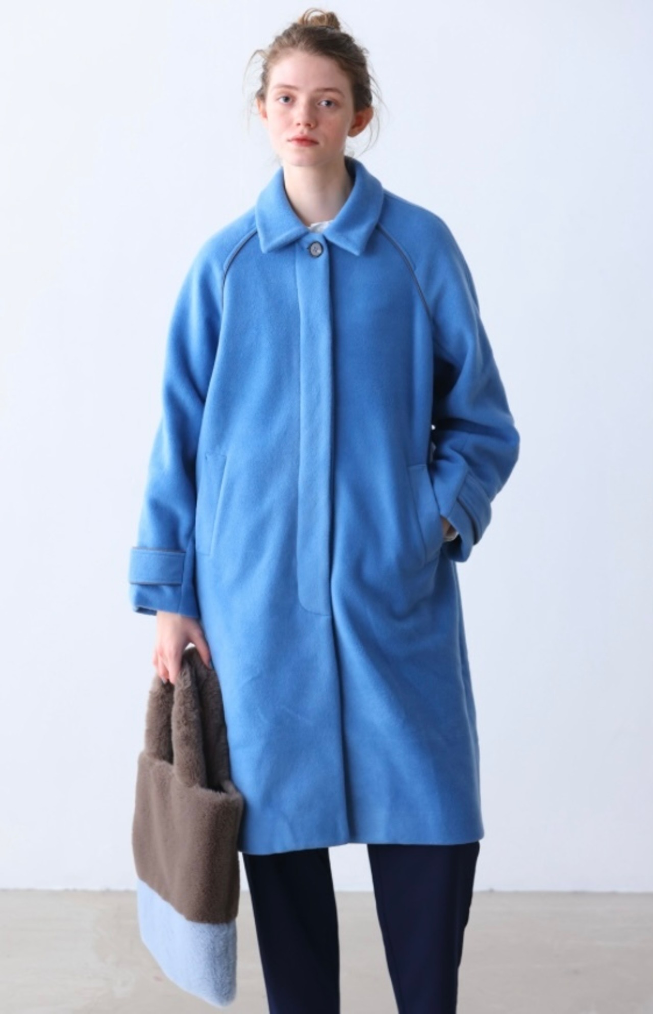 ラグランスリーブ切り替えと袖パーツには微光沢感ある配色テープでパイピングして