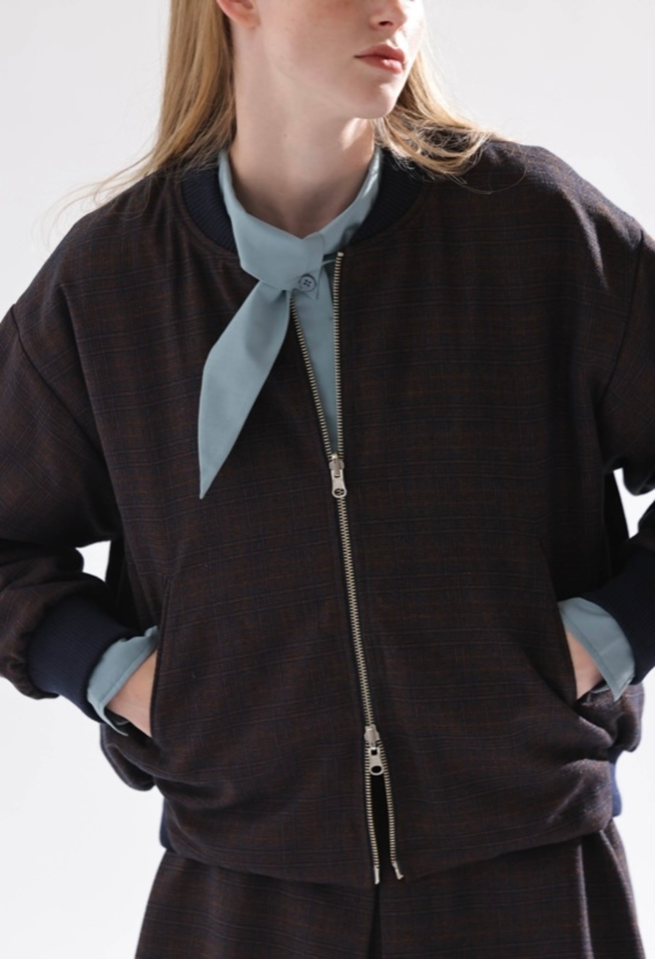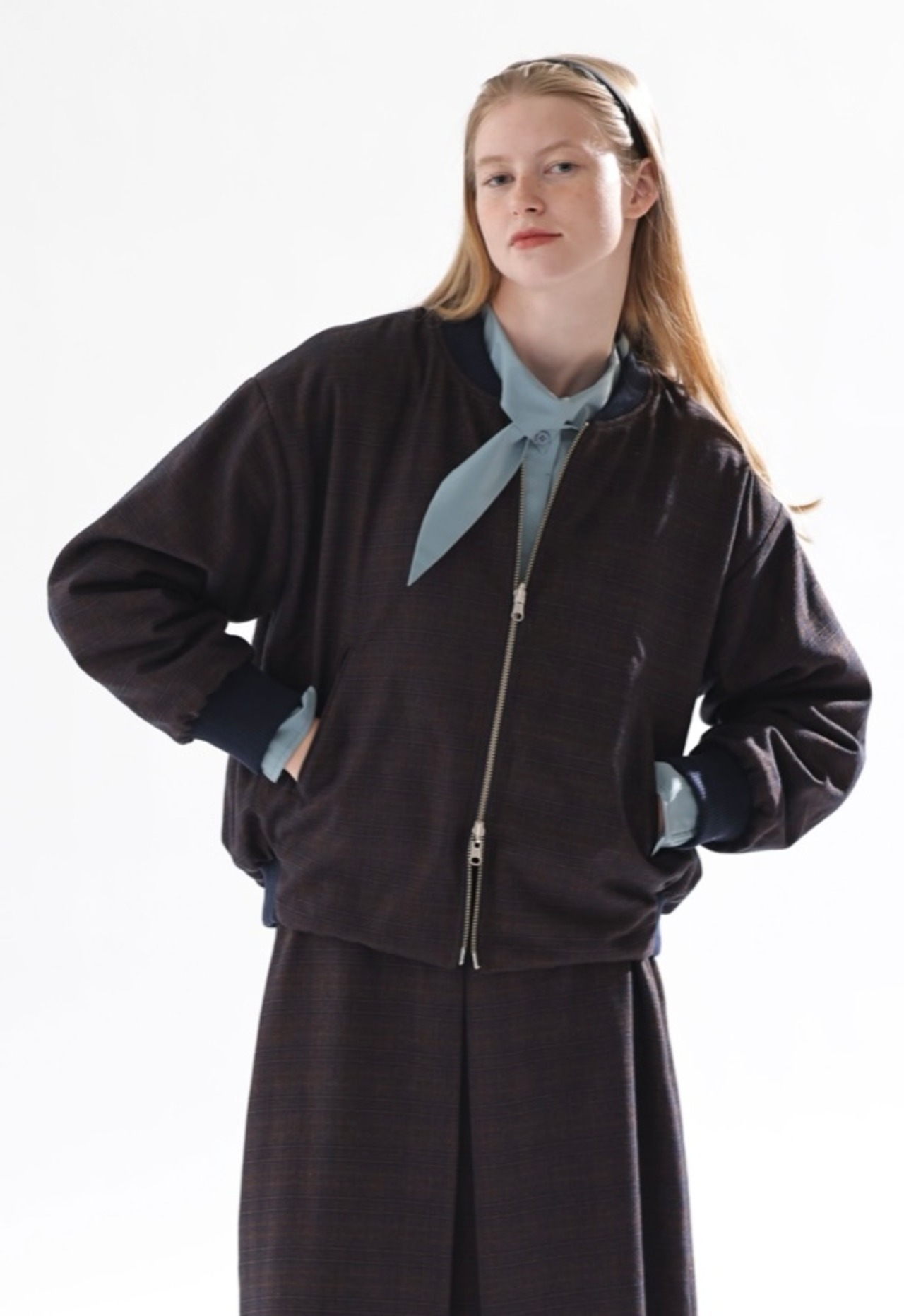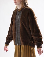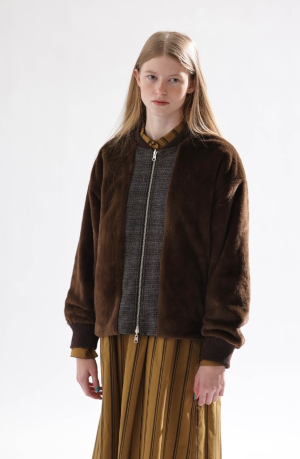 MA1タイプのジャケットをベースに素材感をプラスしてフェイクファー側とチェック側
