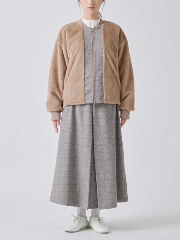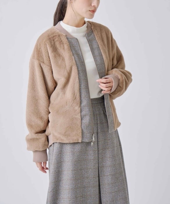 MA1タイプのジャケットをベースに素材感をプラスしてフェイクファー側とチェック側