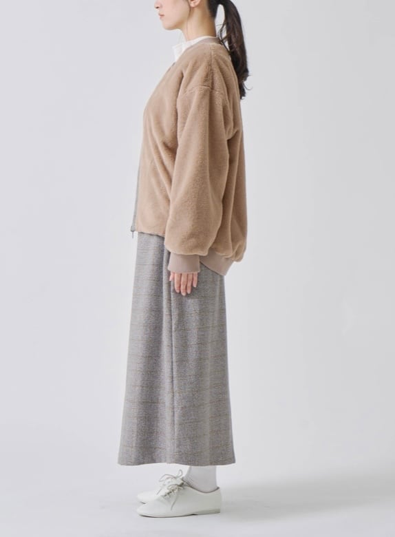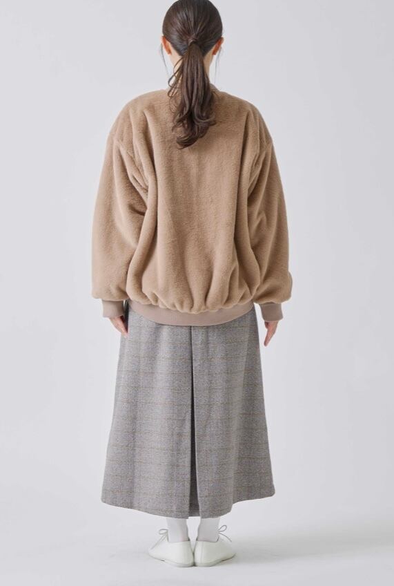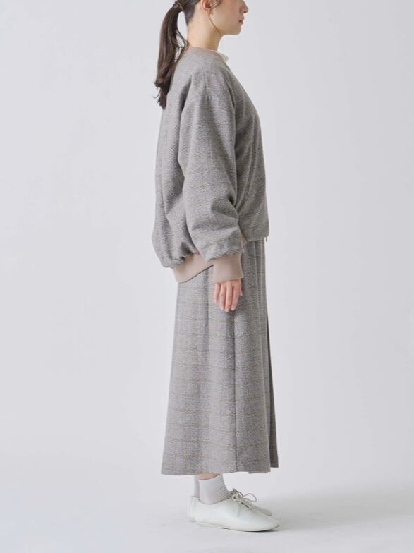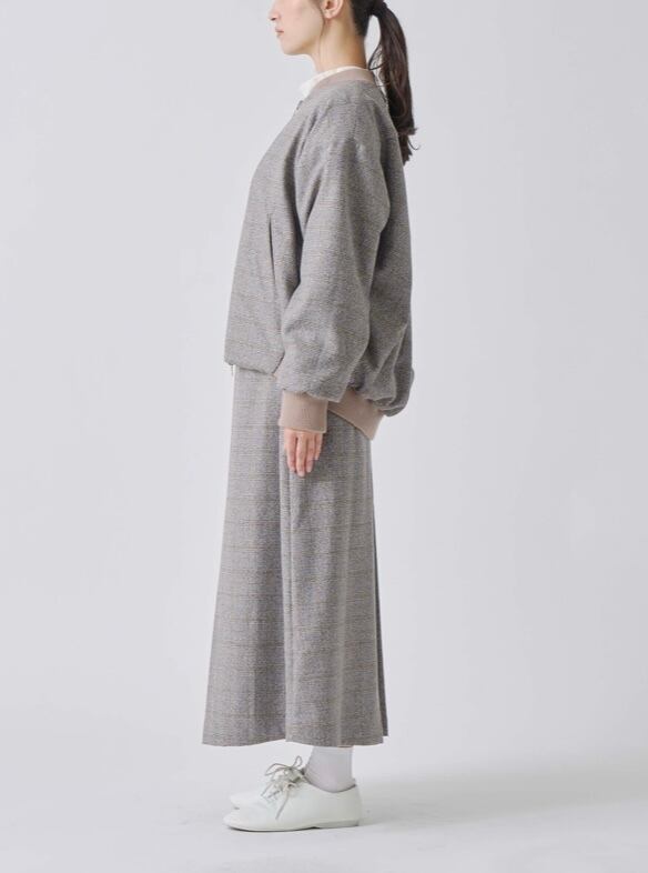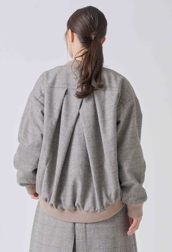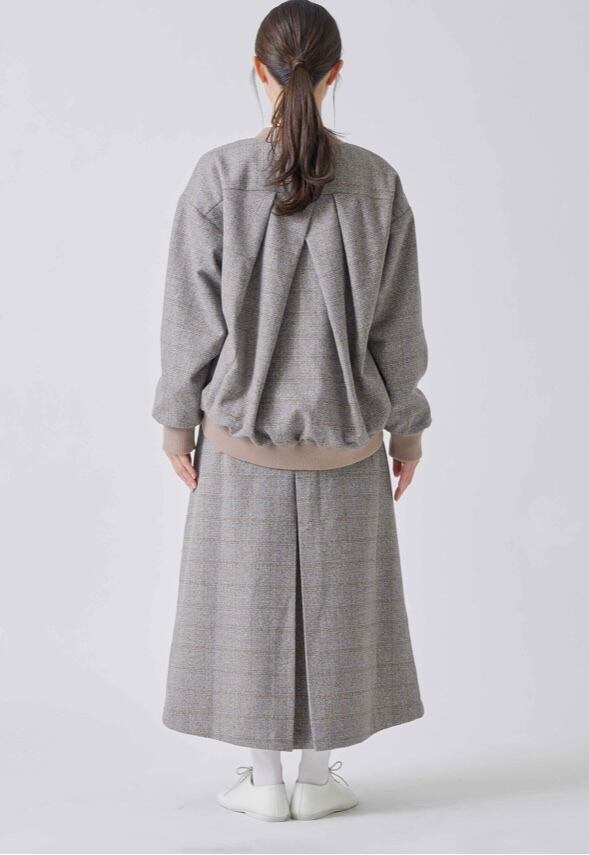 チェック側はバックヨークにタックを入れ裾はギャザーを寄せる事で生地の重なりと丸みのあるシルエットが完成