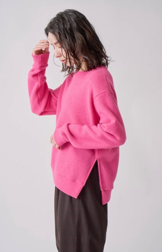 アシンメトリーヘムに仕上げた柔らかな肌触りのニットソートップス…
