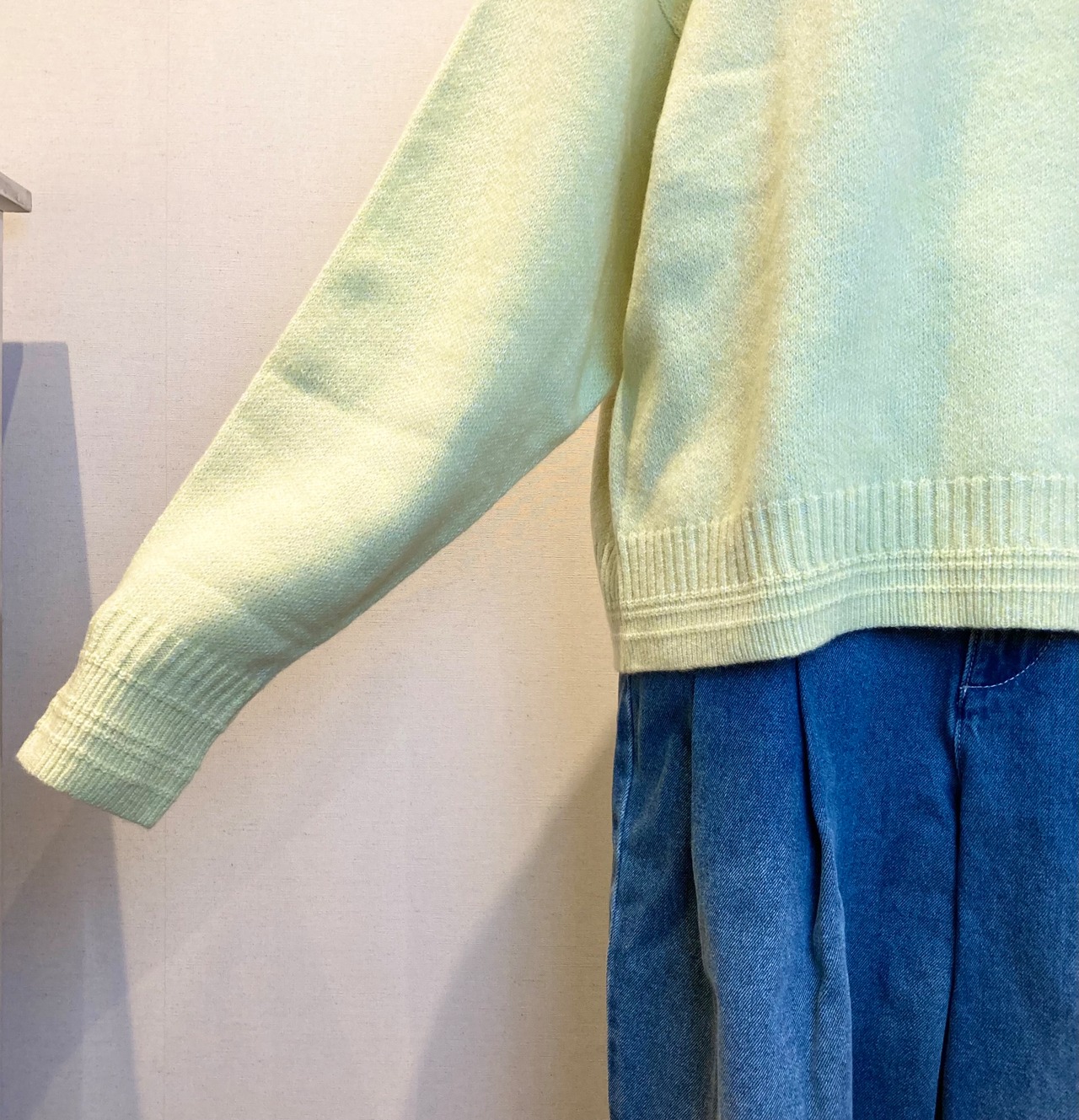 オーストラリア産のextra super fine lamswool の糸とUSAとオーストラリアの原綿を撚糸している糸を使用した柔らかくて暖かい素材です