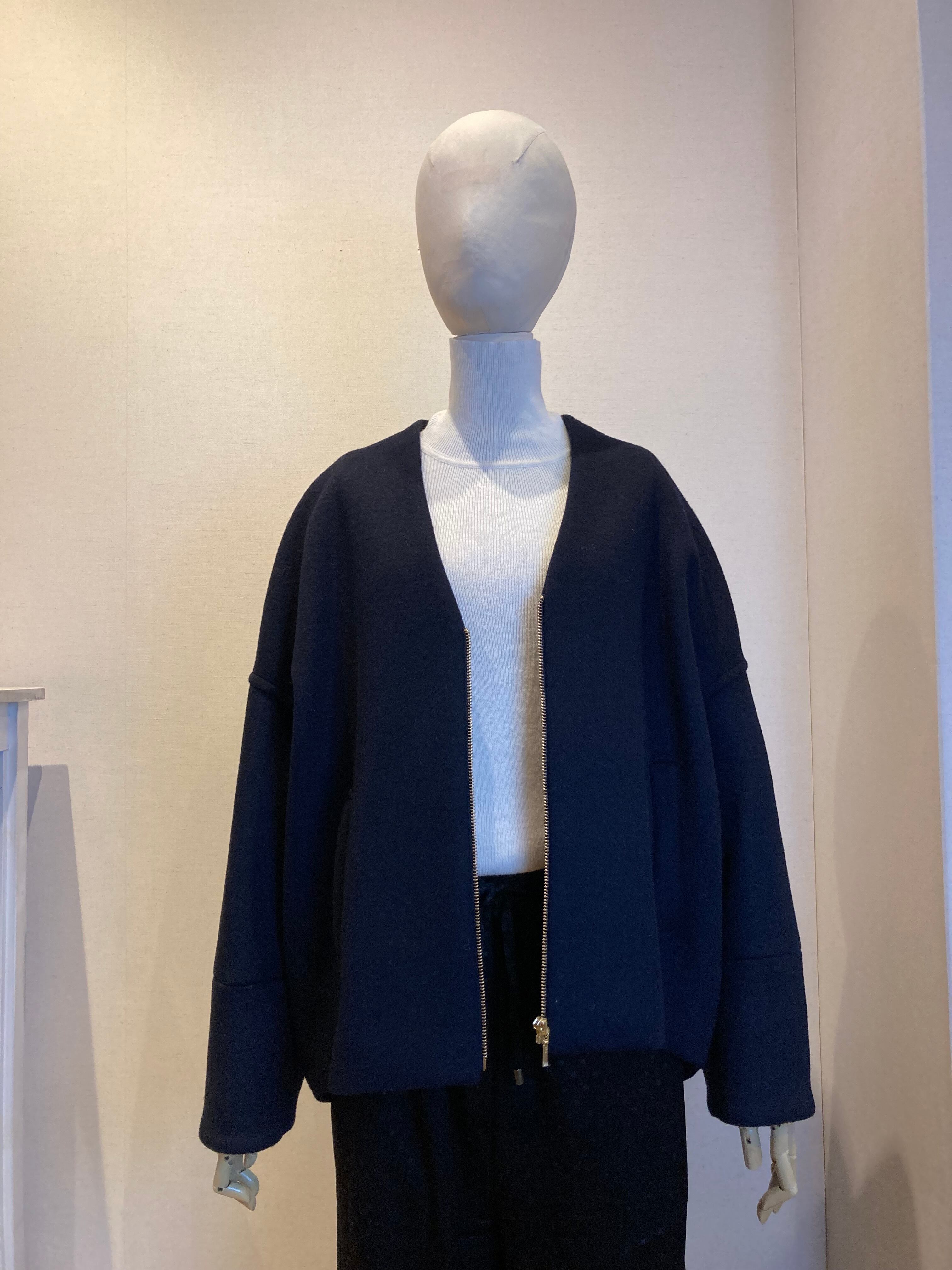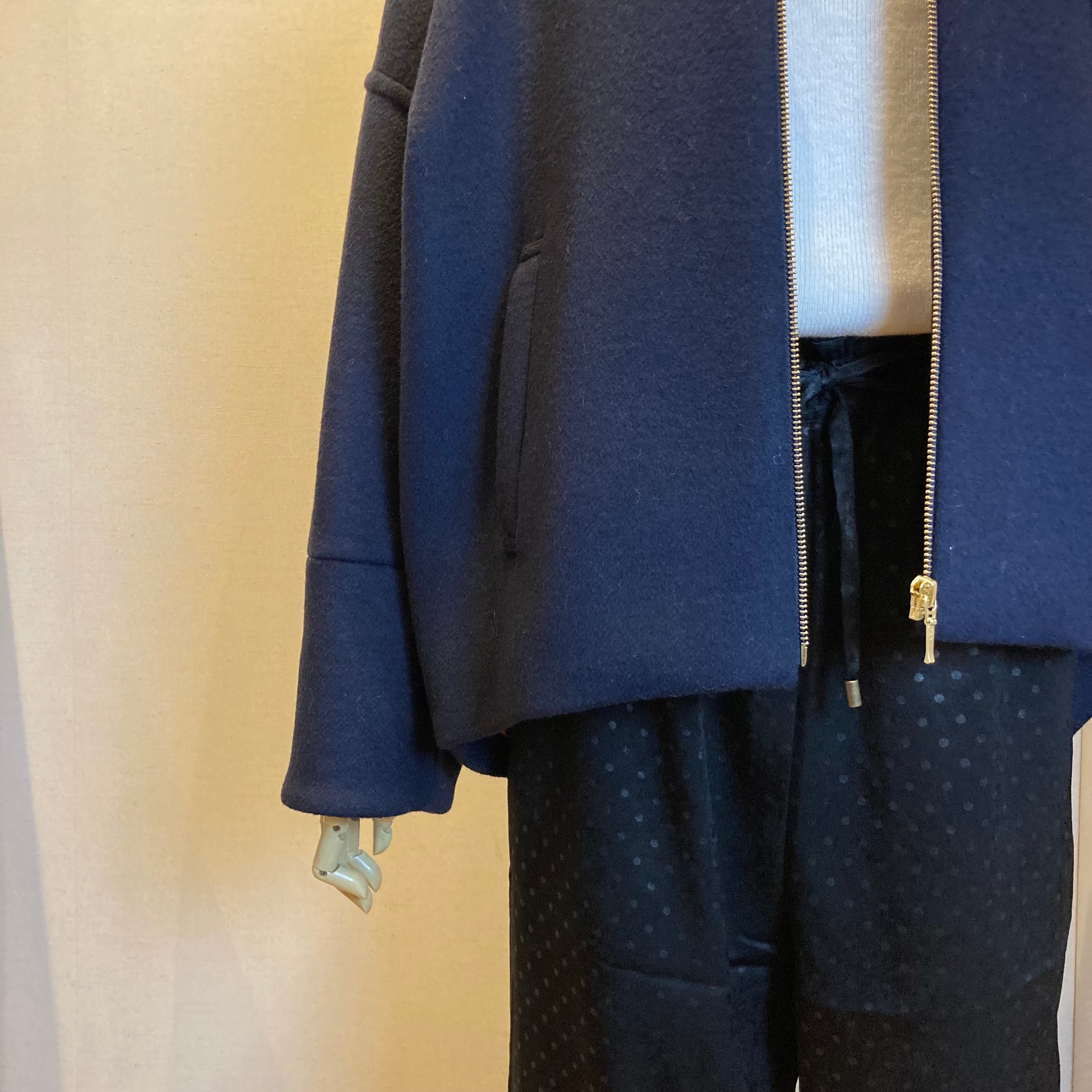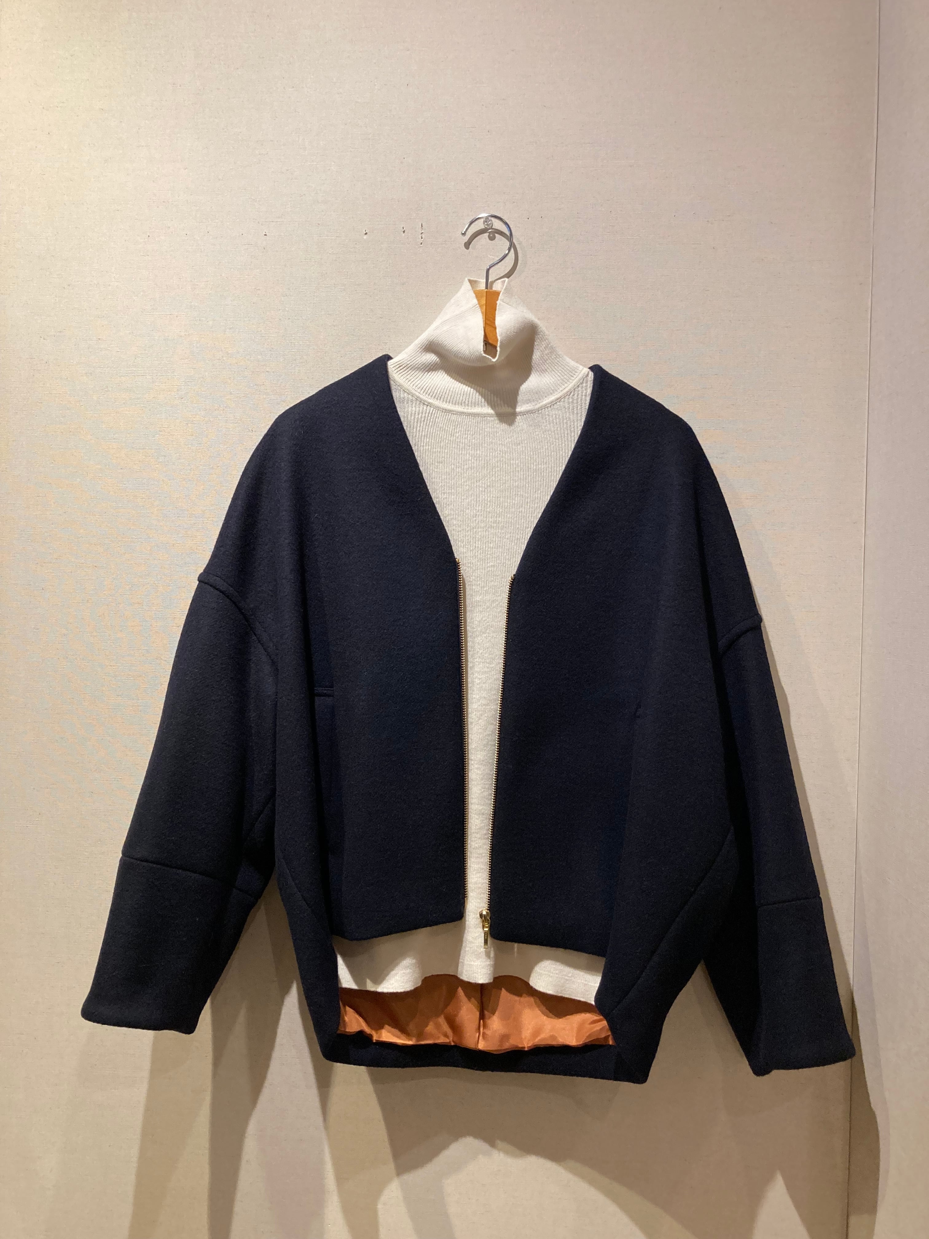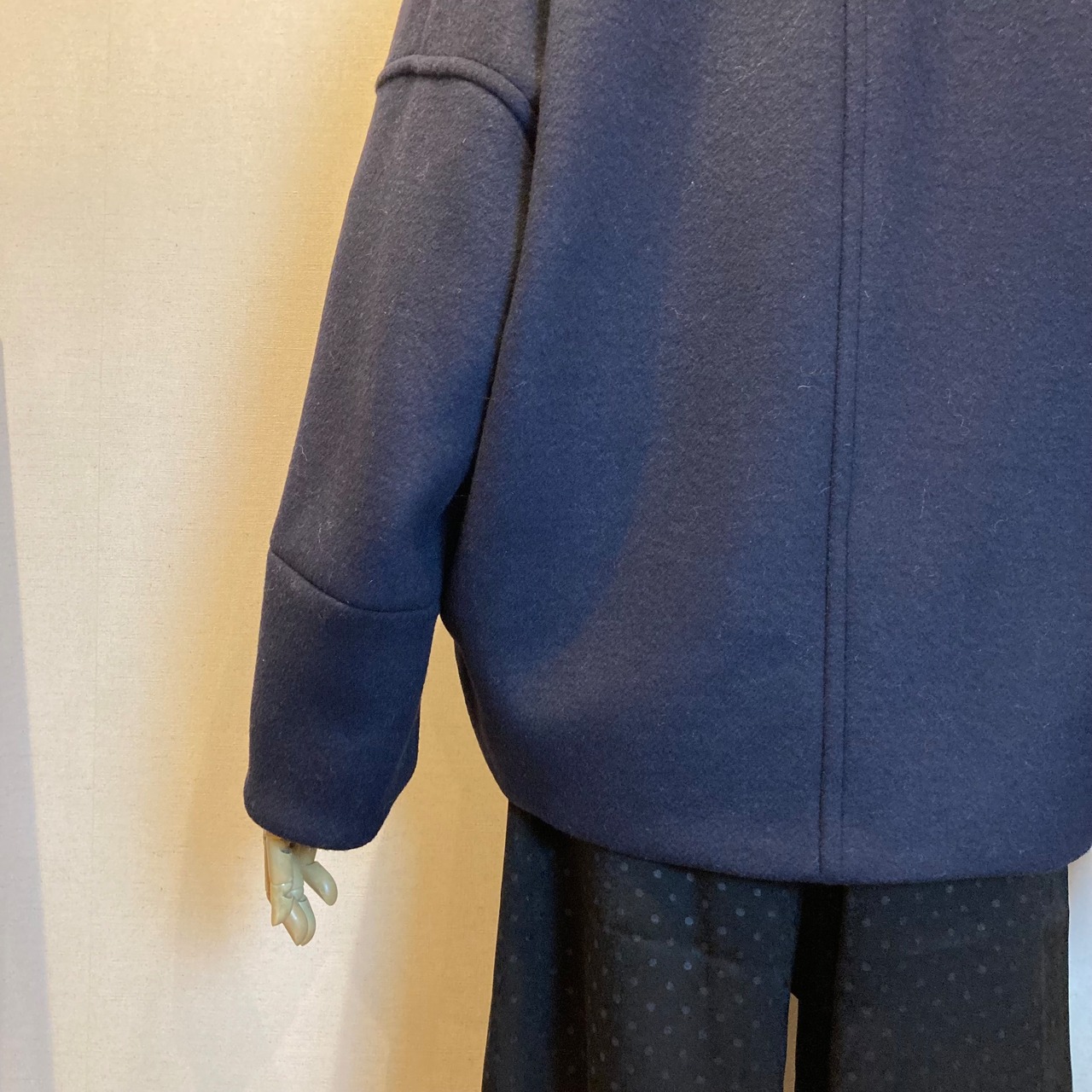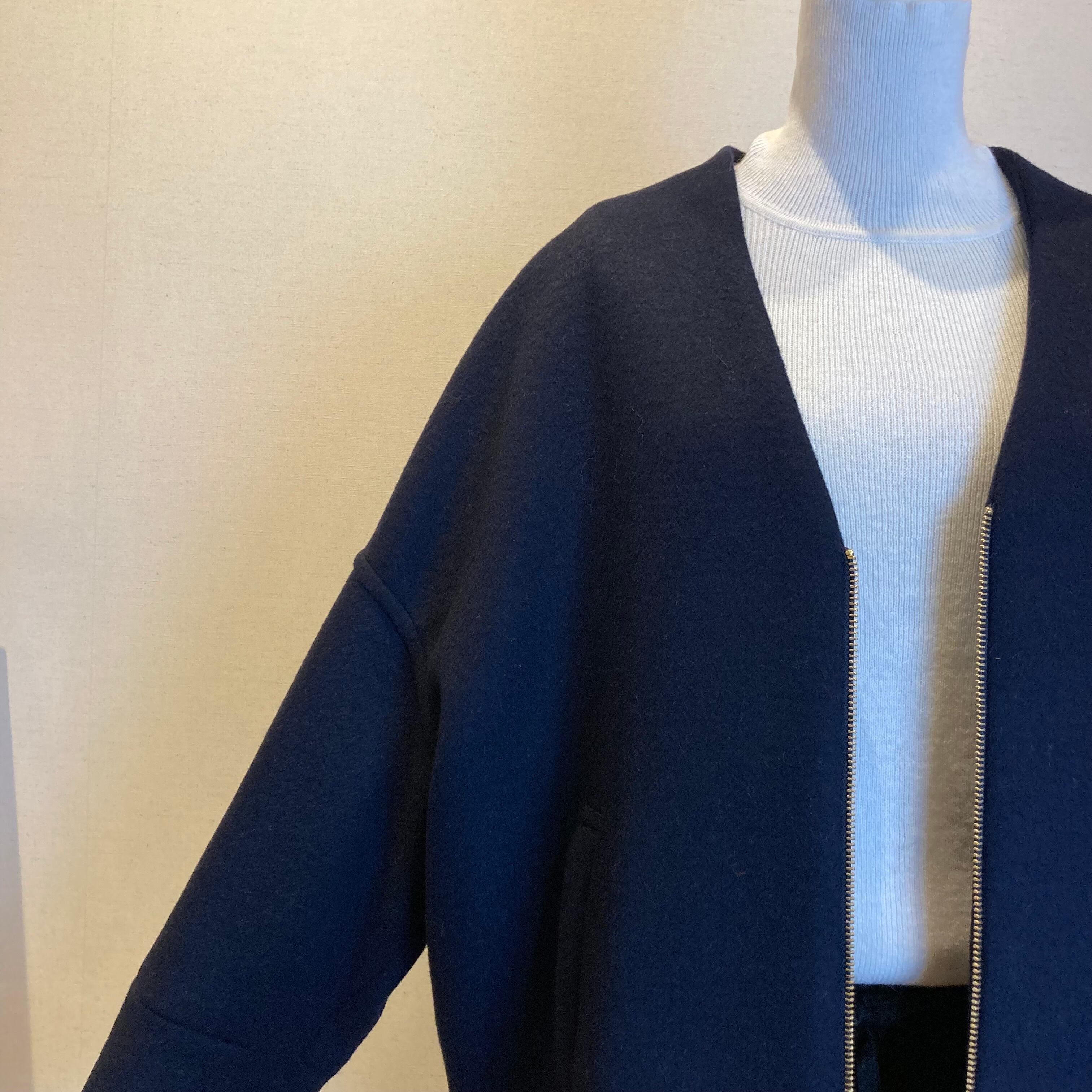 肩周りからバスト辺りはゆっくり目のサイズ感ですのでインナーに厚手のニットも着用出来ます