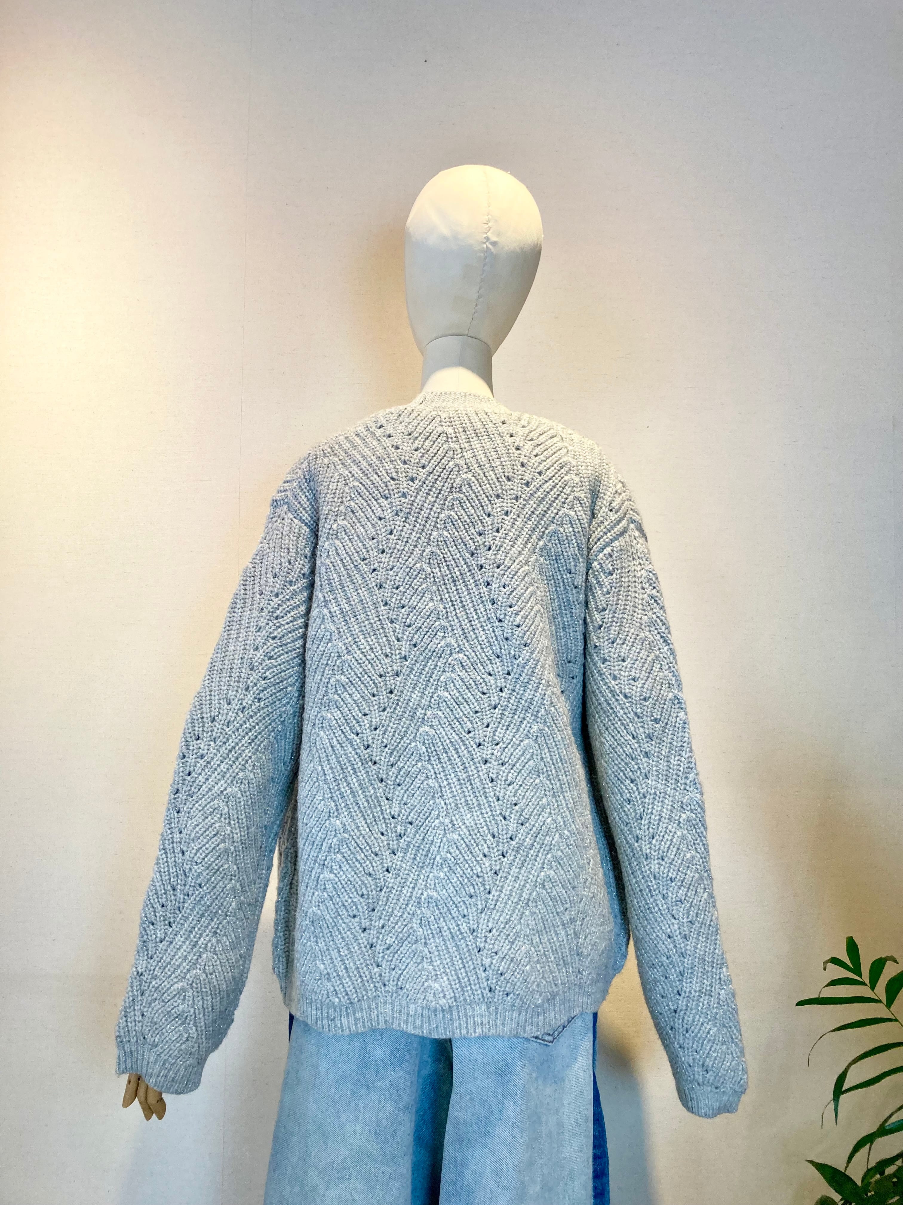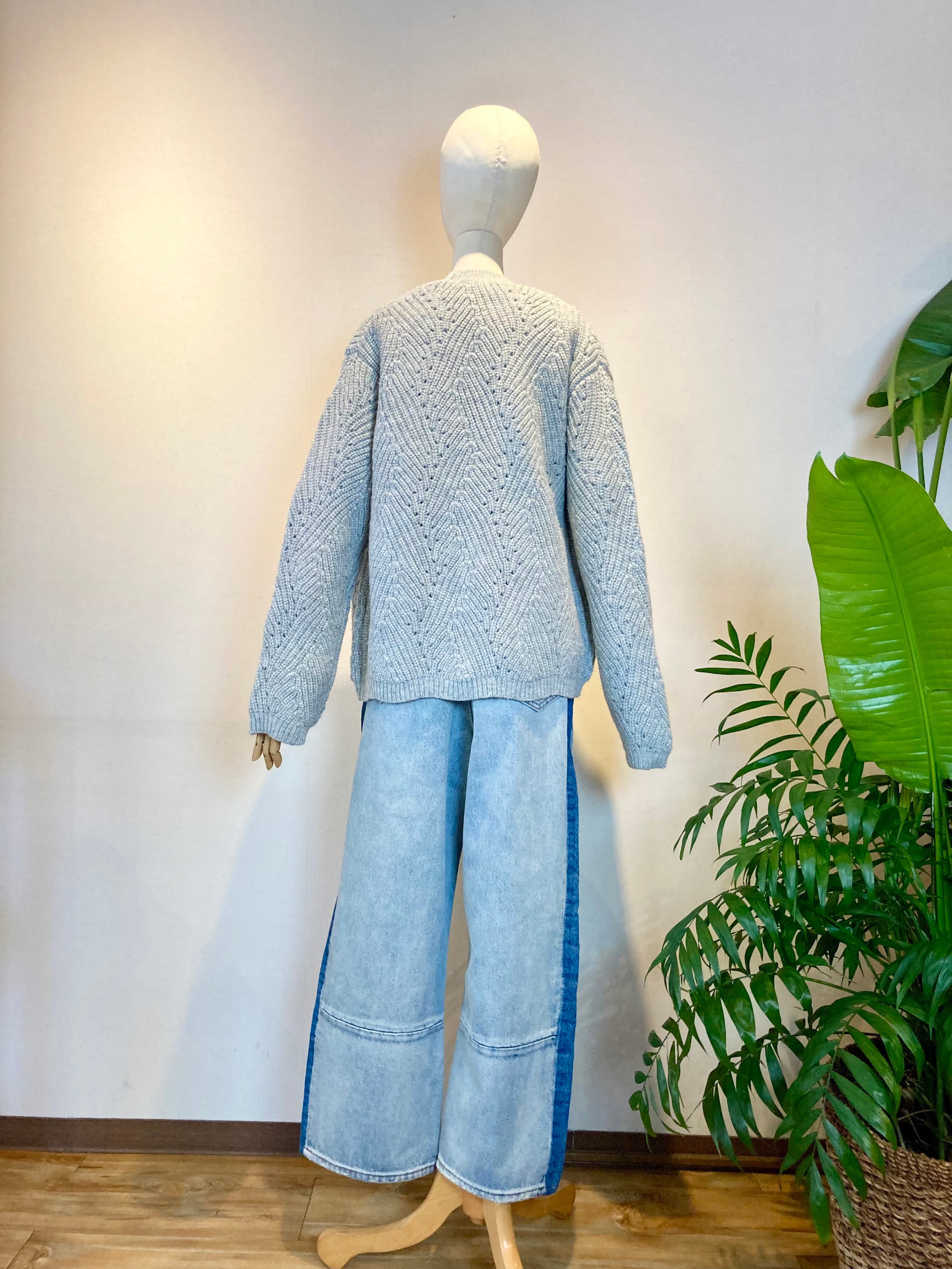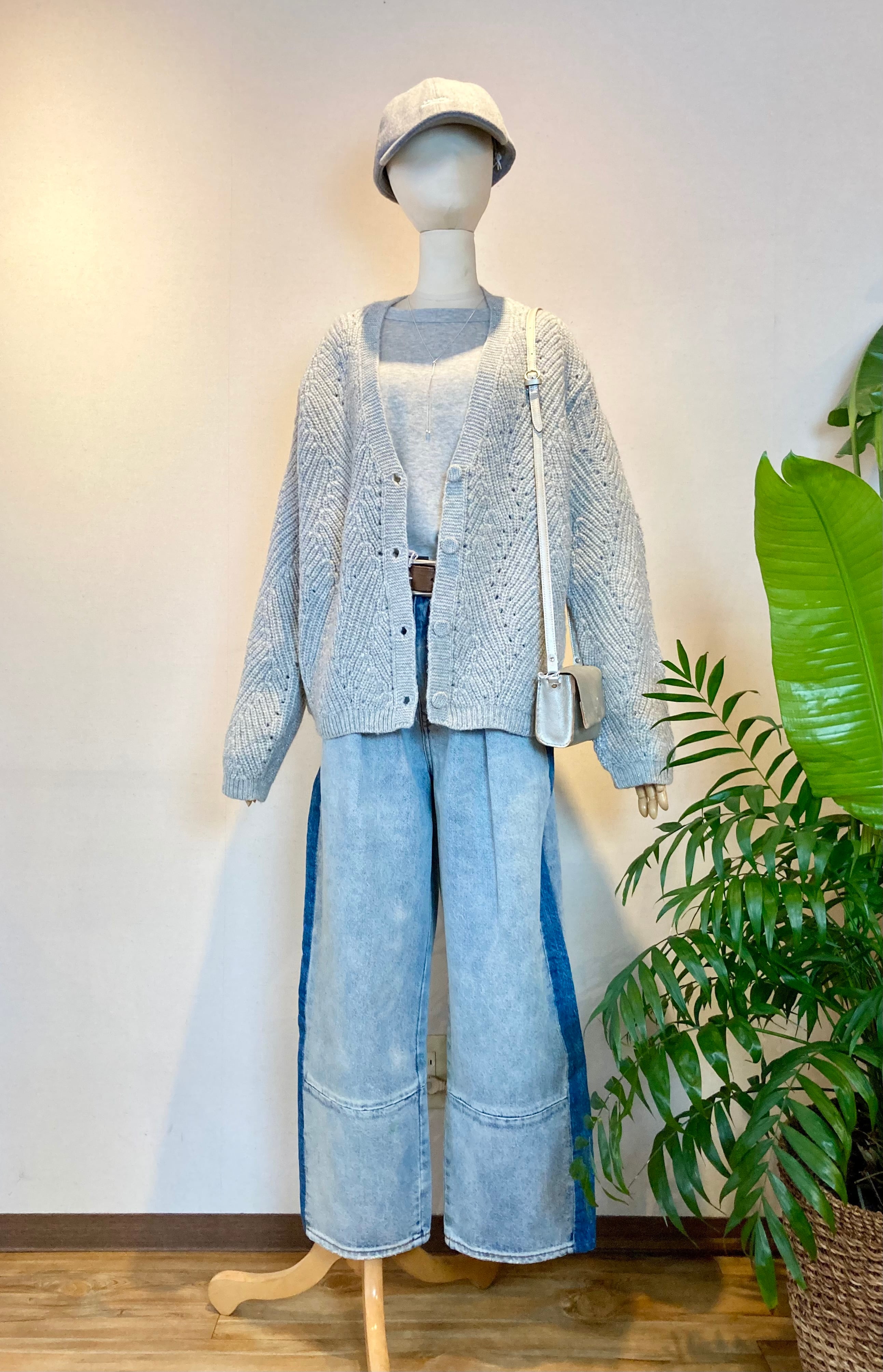 ざっくりと編み込まれたVネックのニットカーディガン…