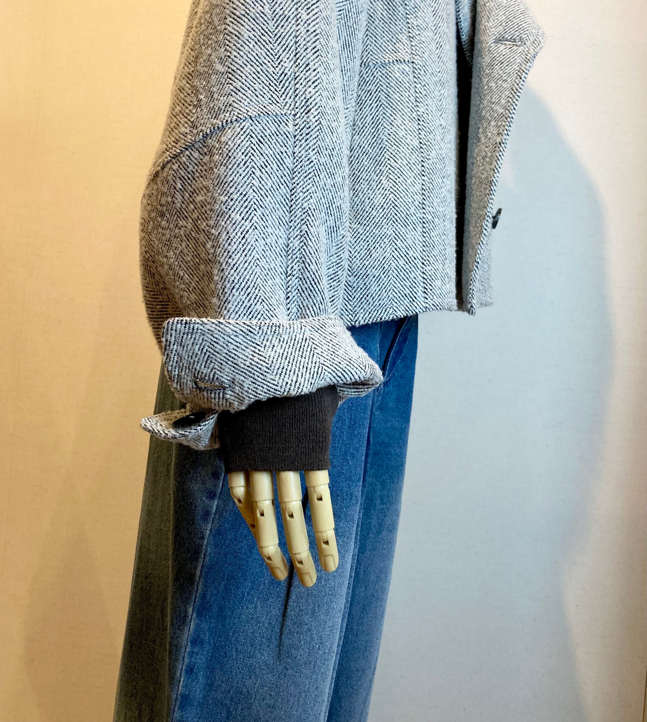 袖先は1つボタン付きカフス仕様で折り返しても着て頂けます