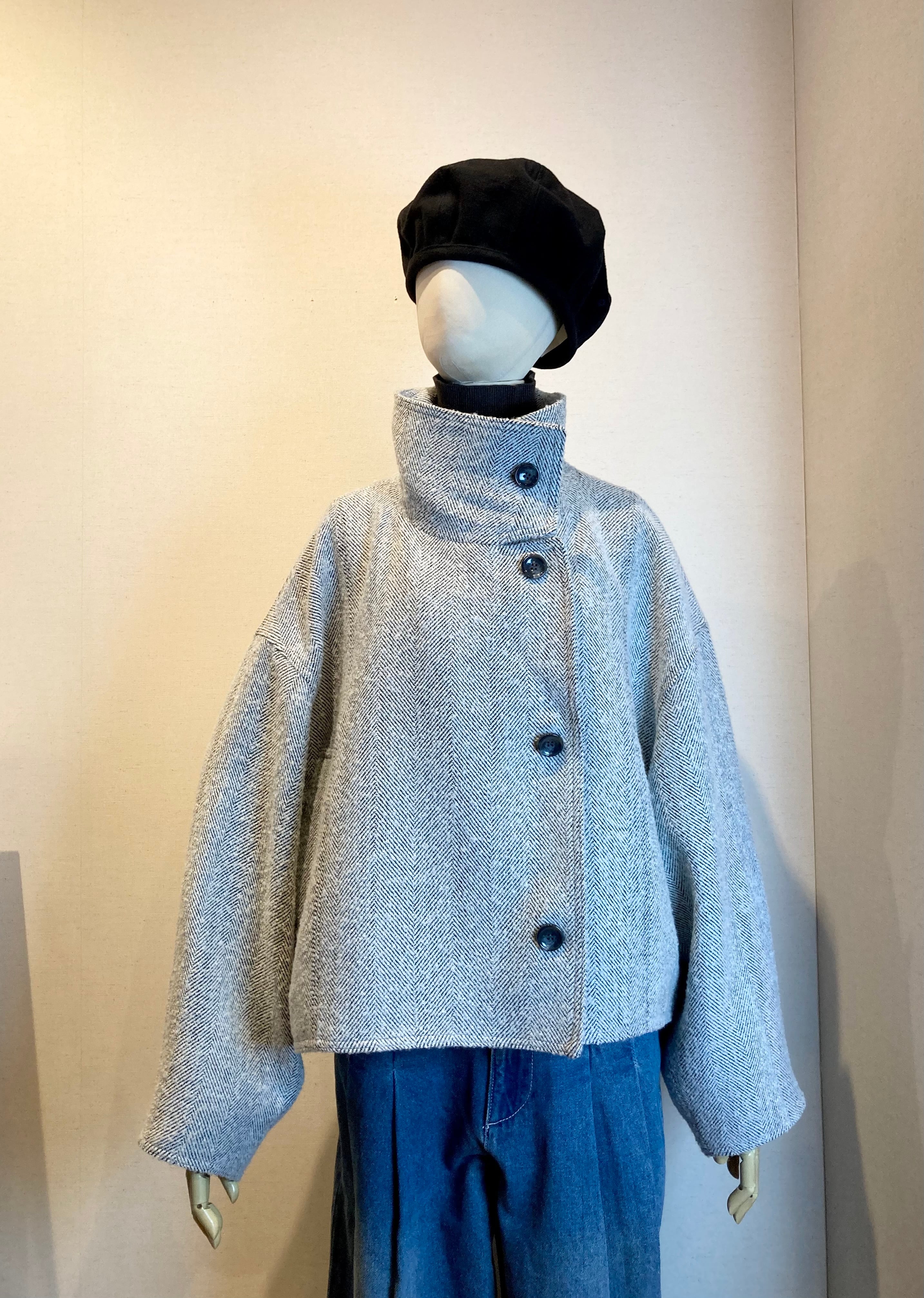 襟元はスタンドカラーでもオープンカラーでも2ウェイで着用出来ます