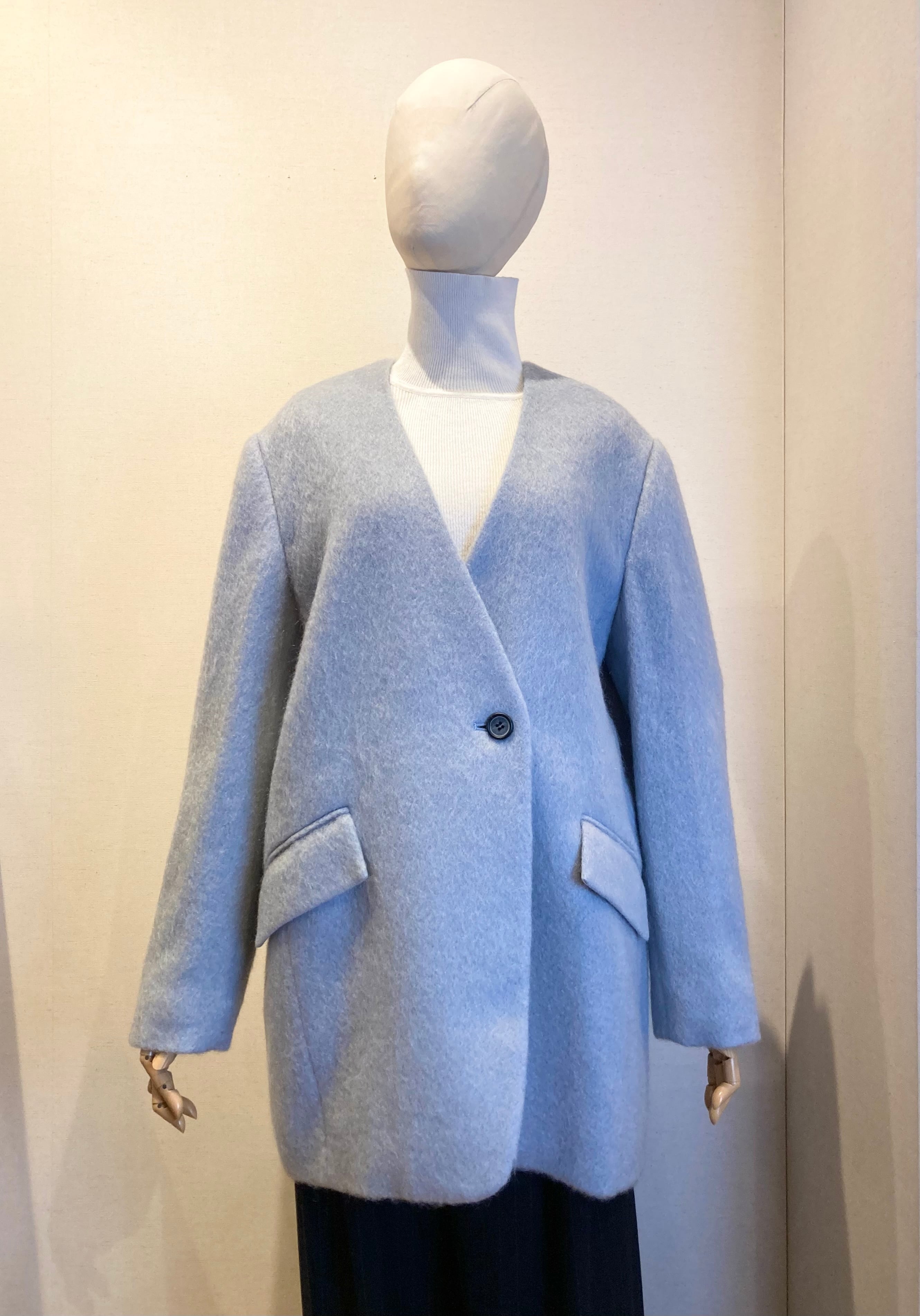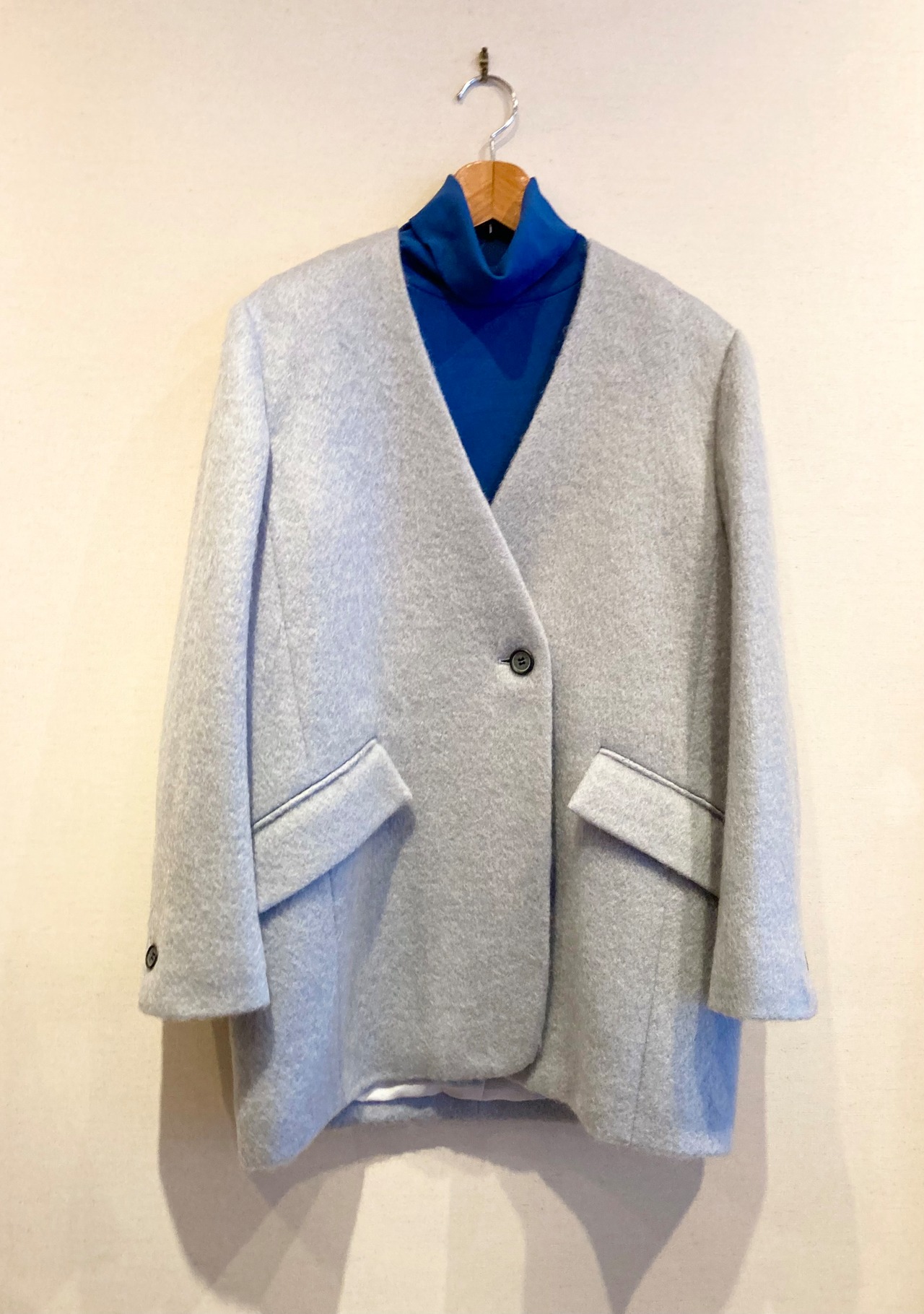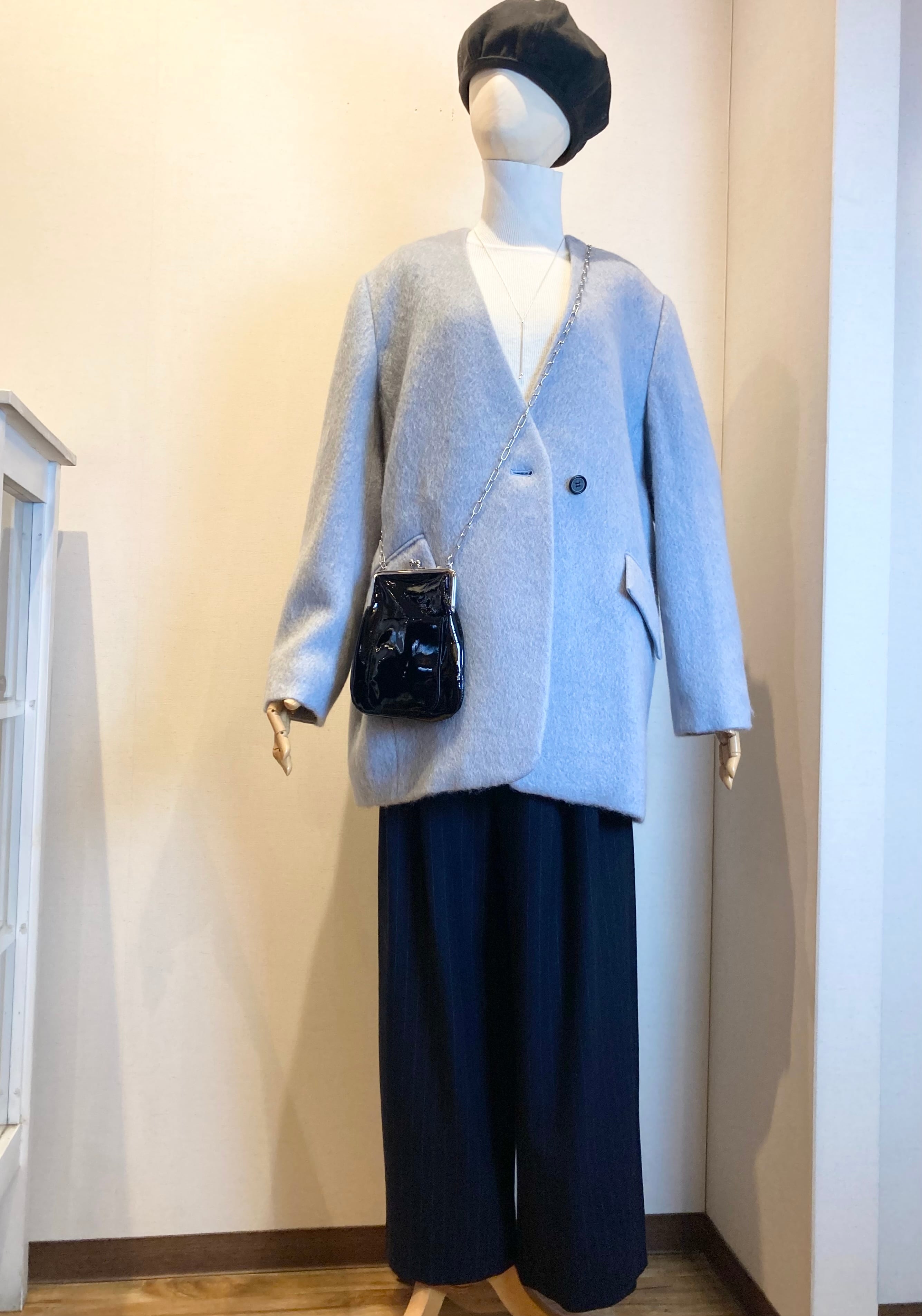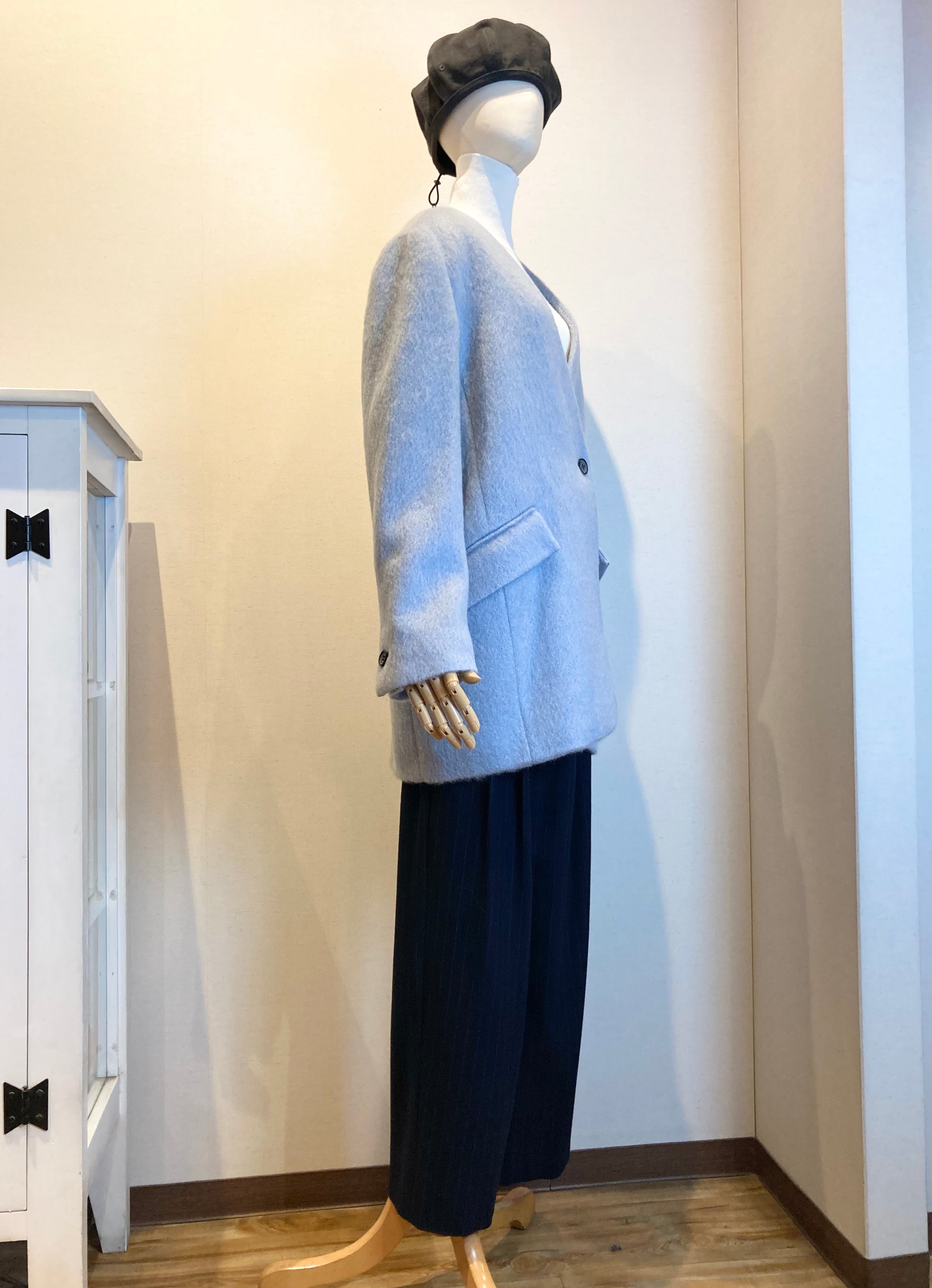 柔らかく暖かいモヘアシャギー素材のジャケット…