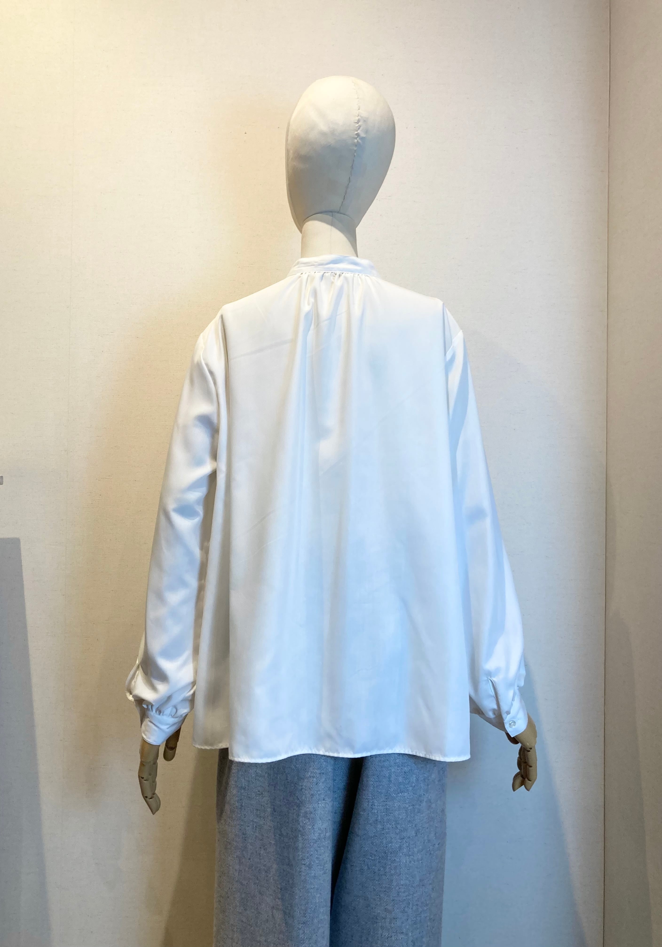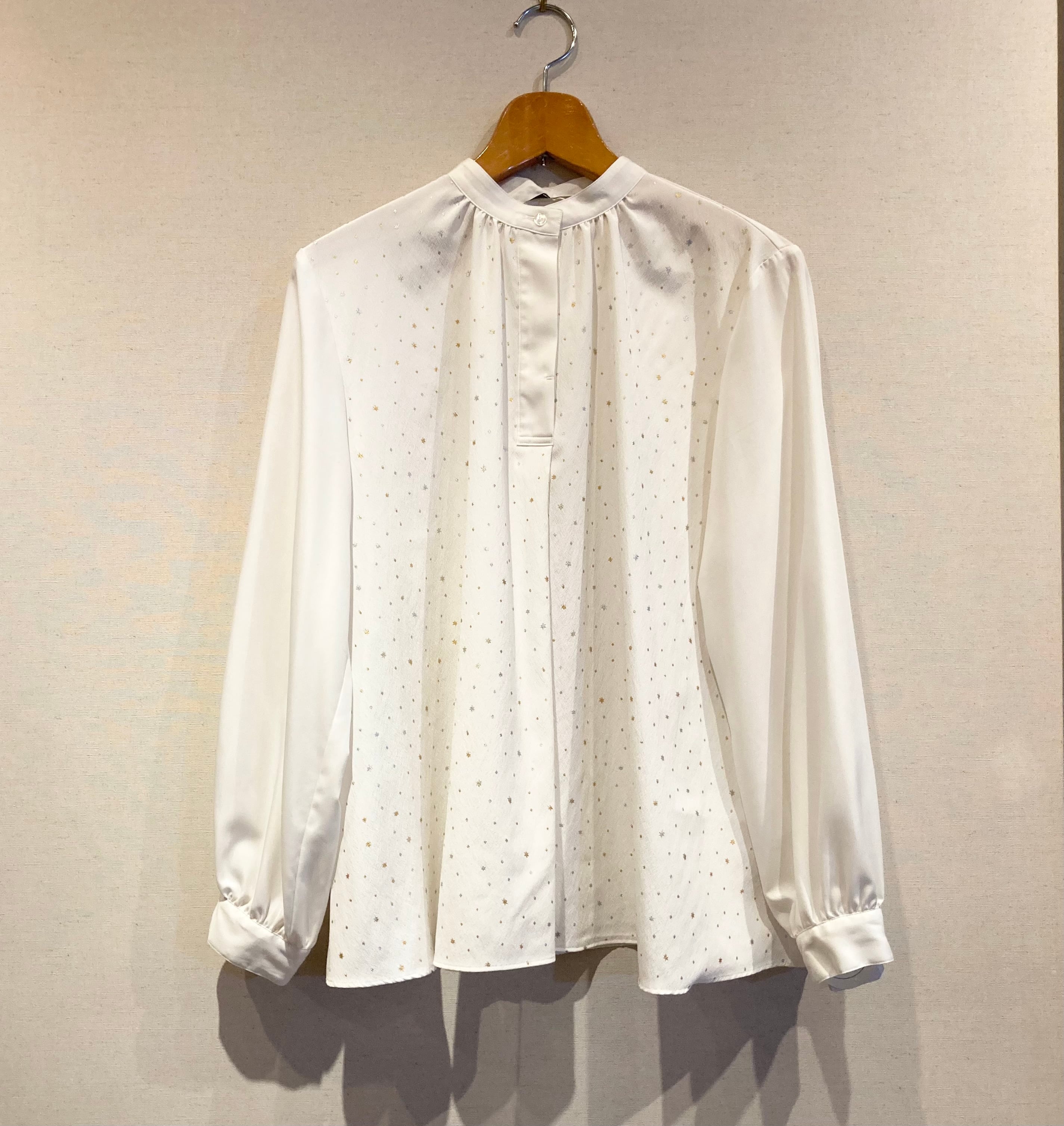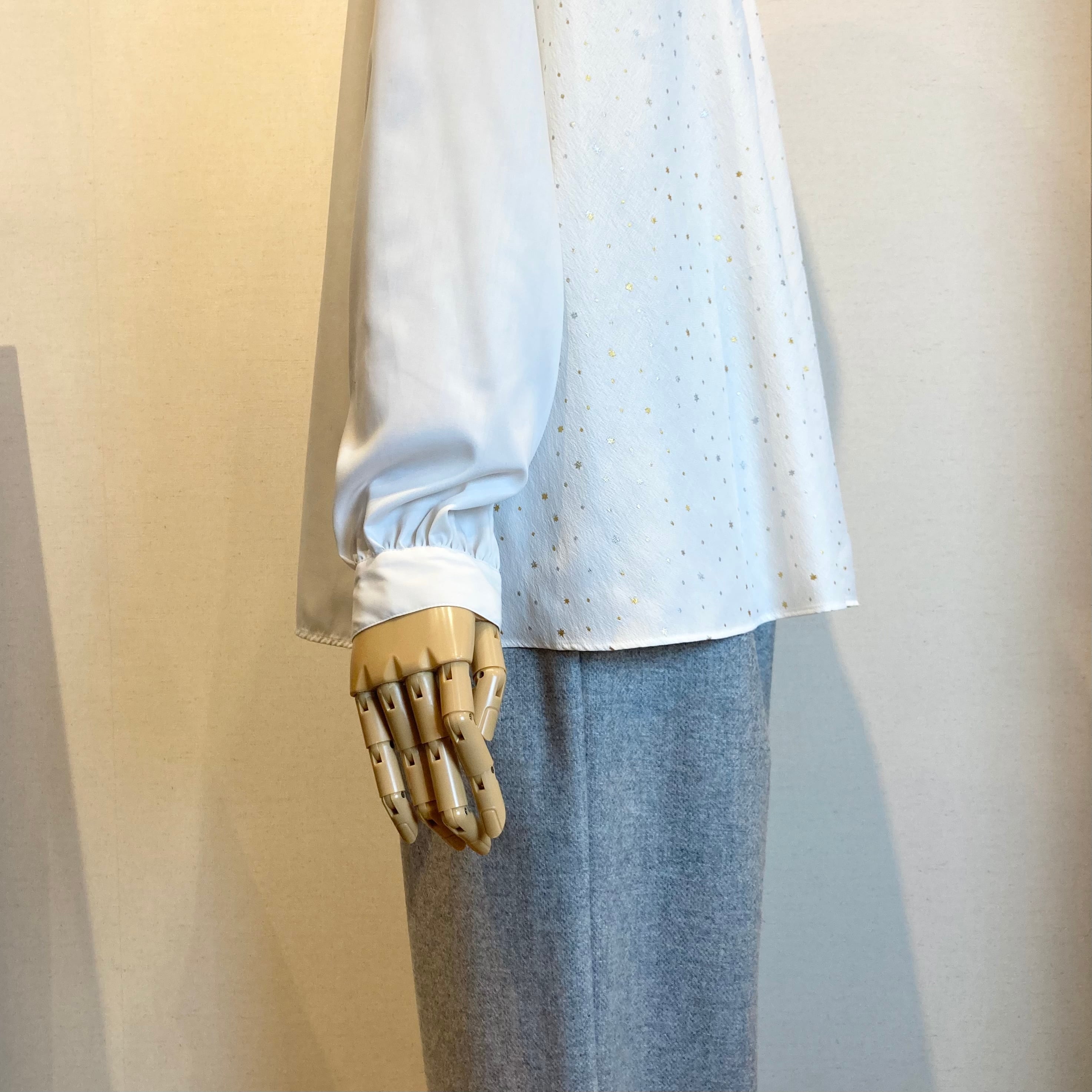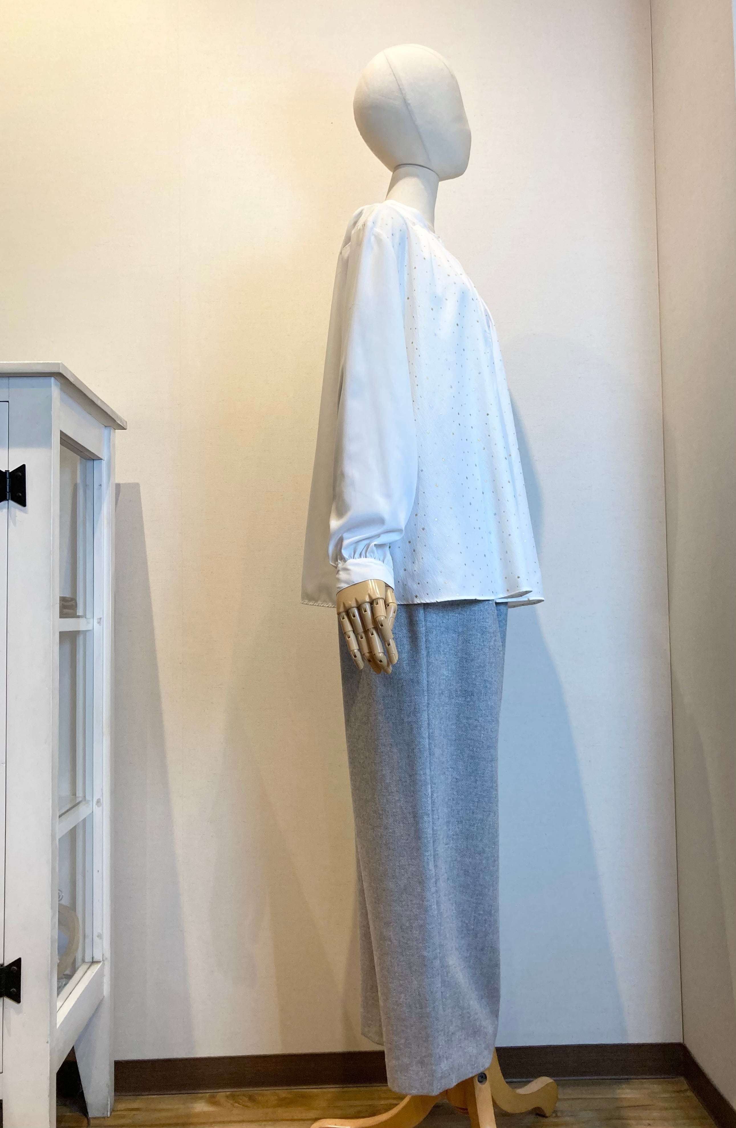 ベストやカーディガン、ジャケットのインに長い期間着こなしを楽しめるブラウスです