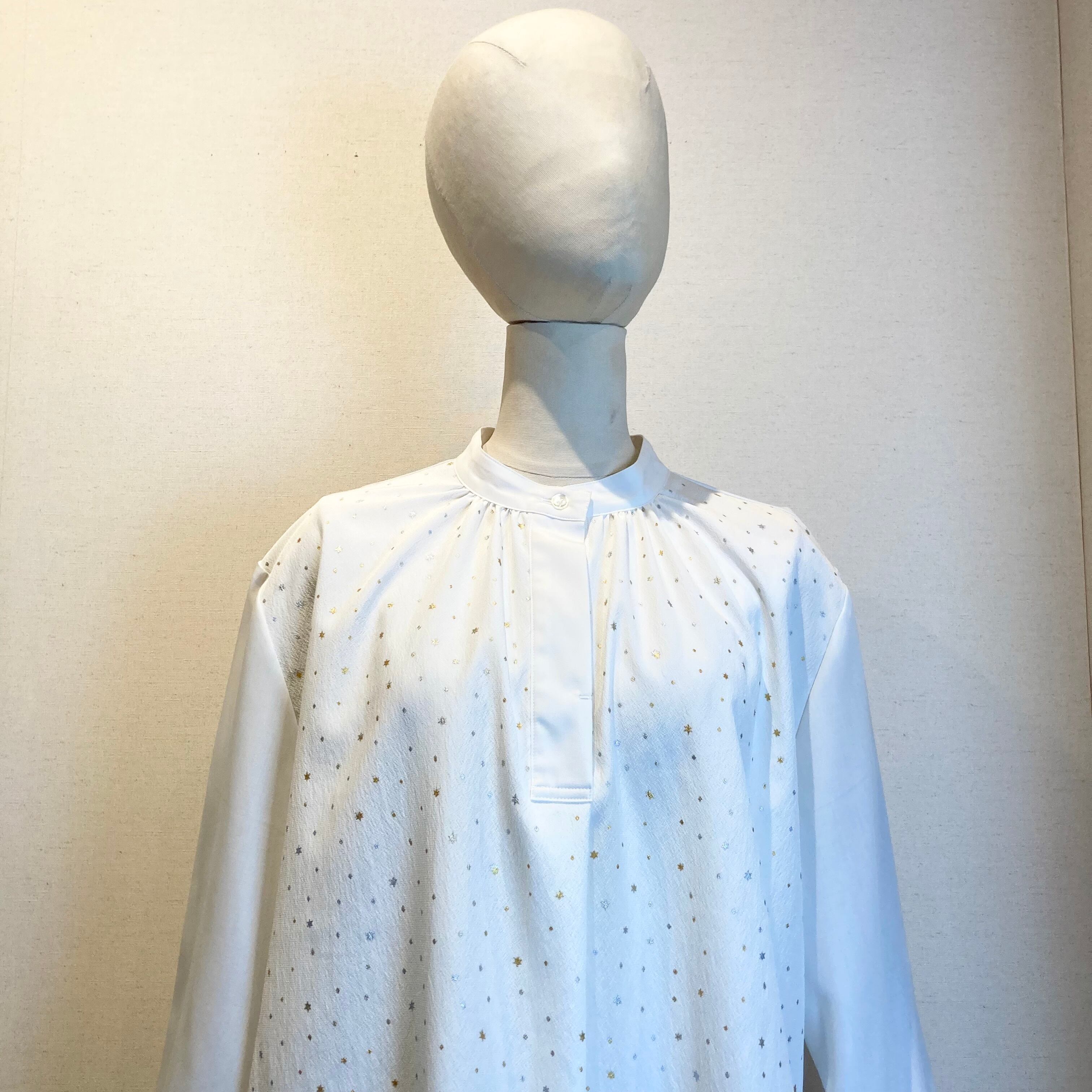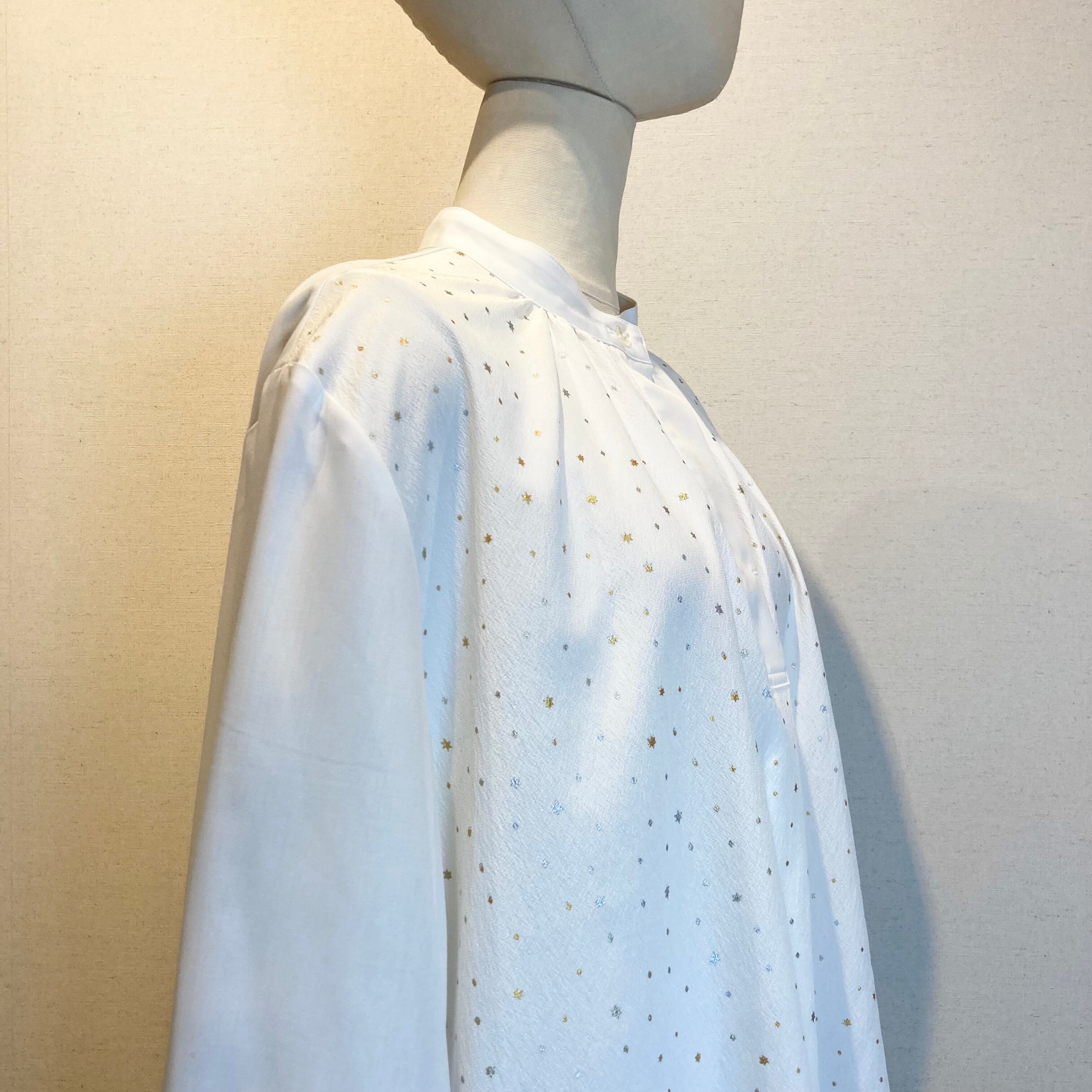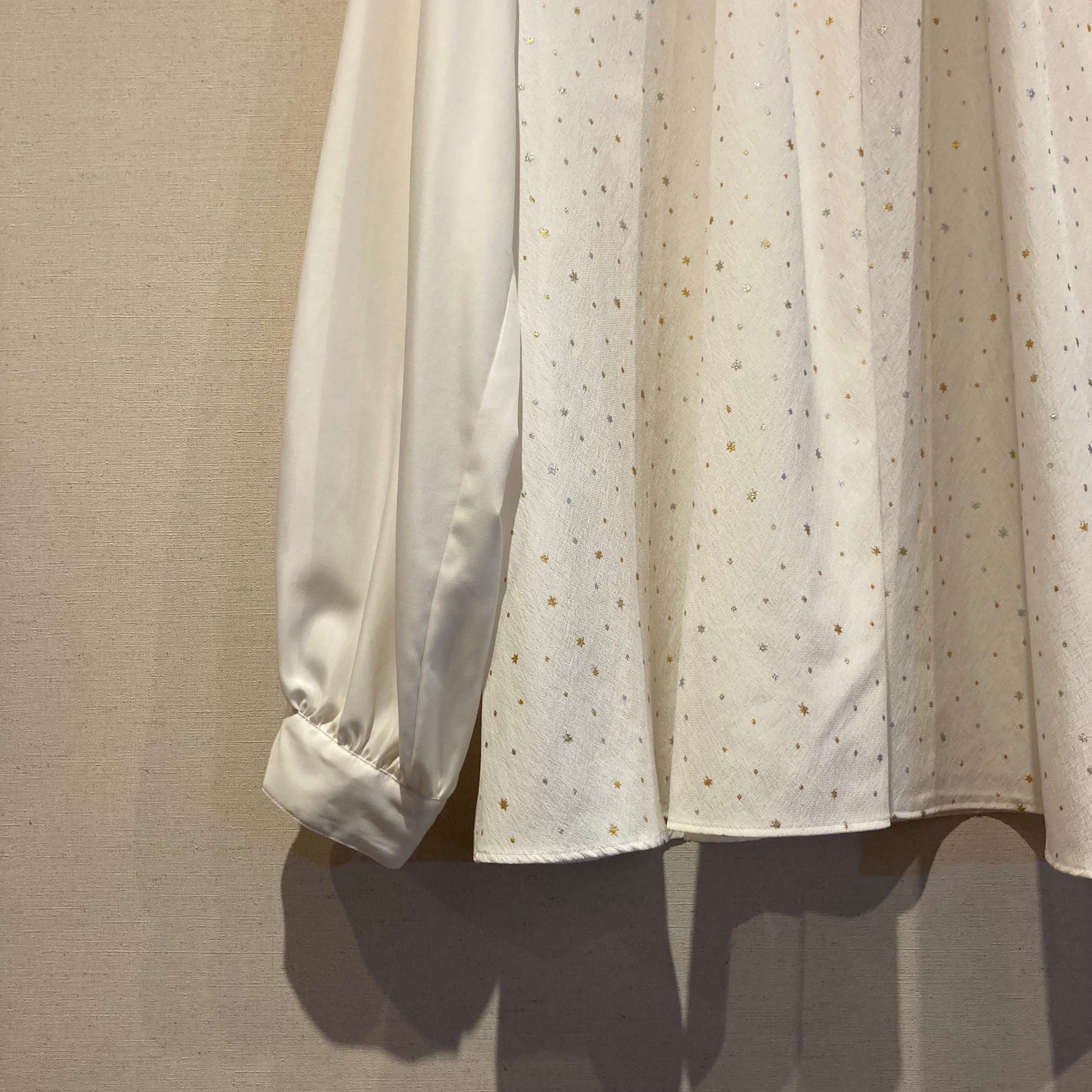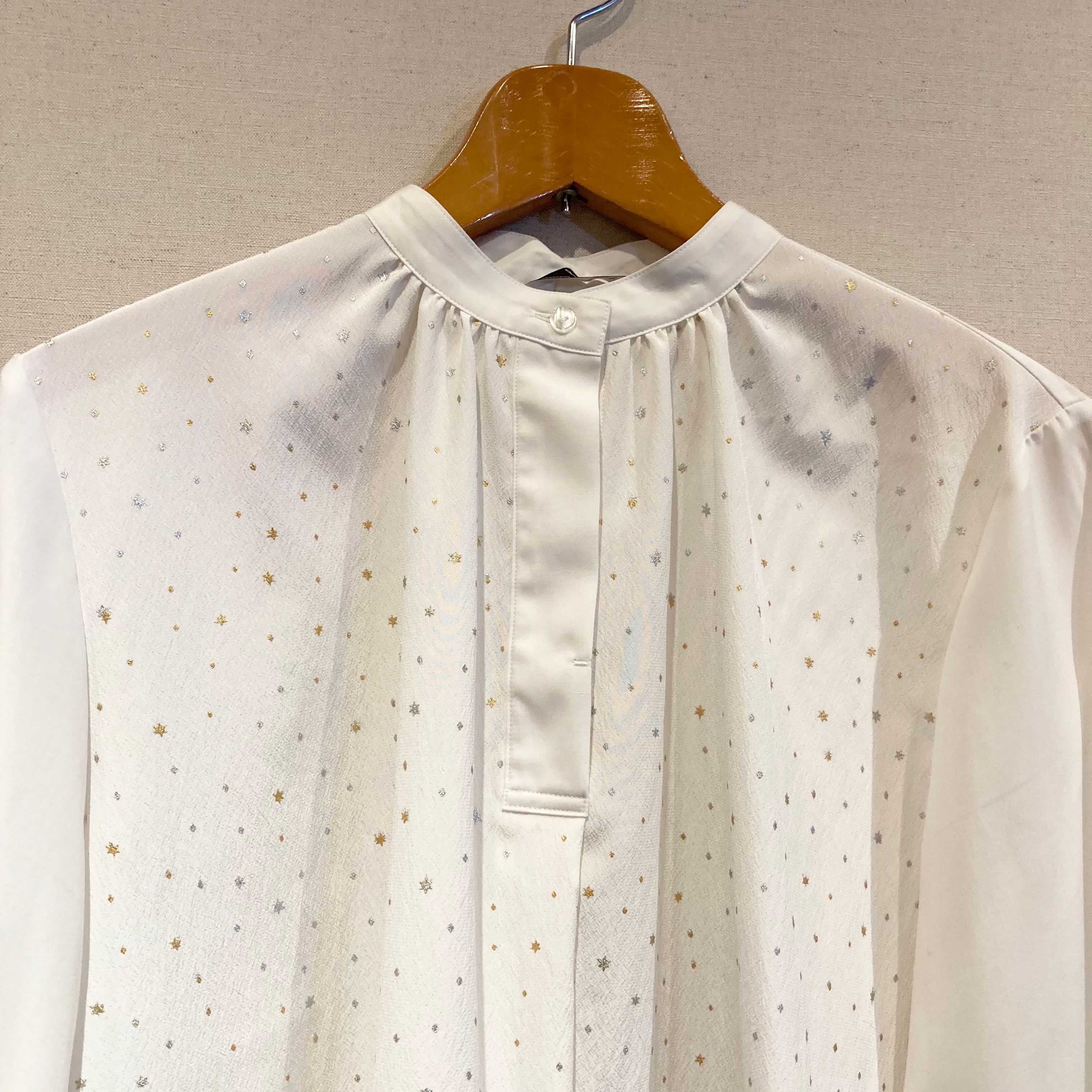 ベストやカーディガン、ジャケットのインに長い期間着こなしを楽しめるブラウスです