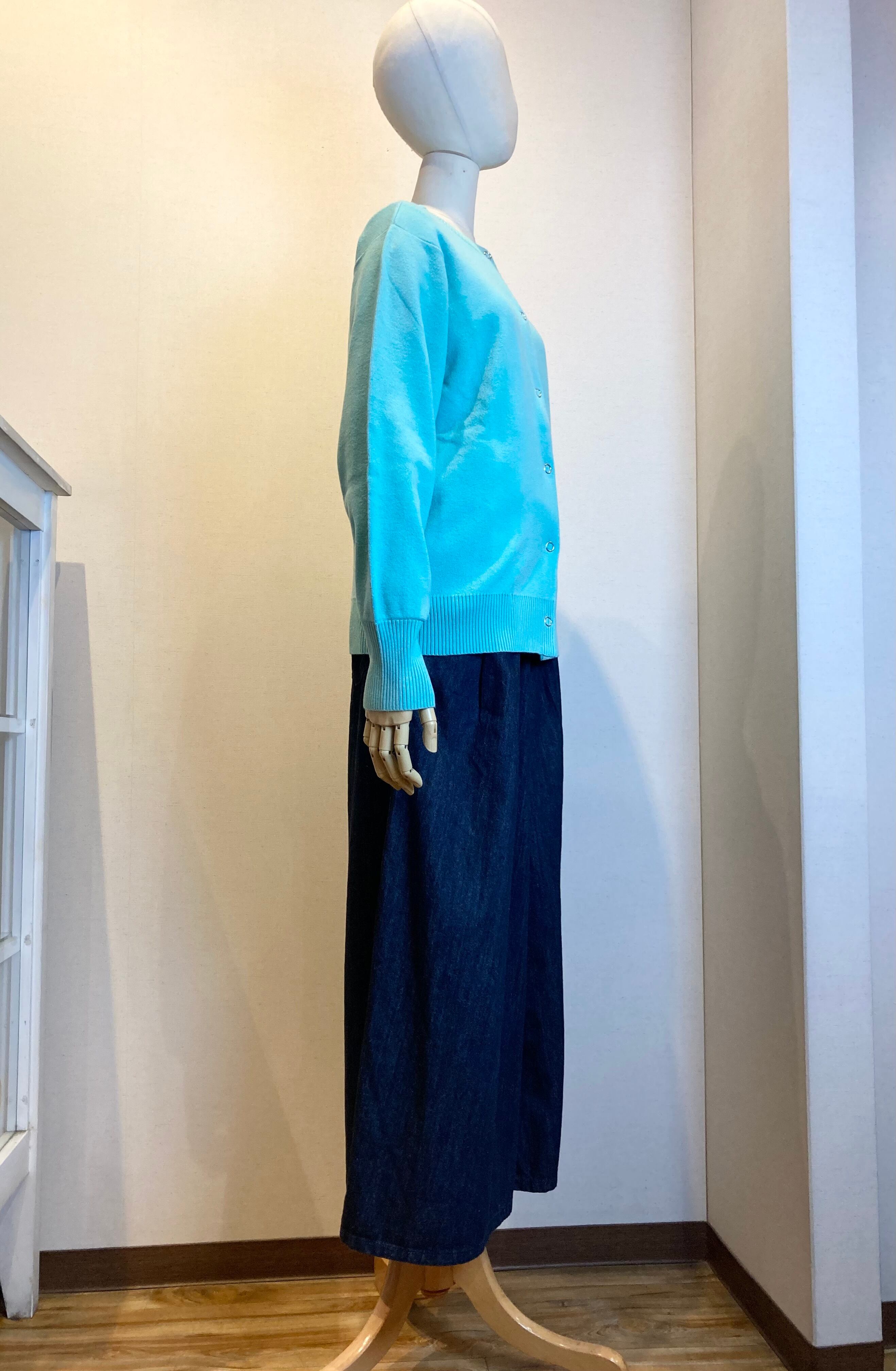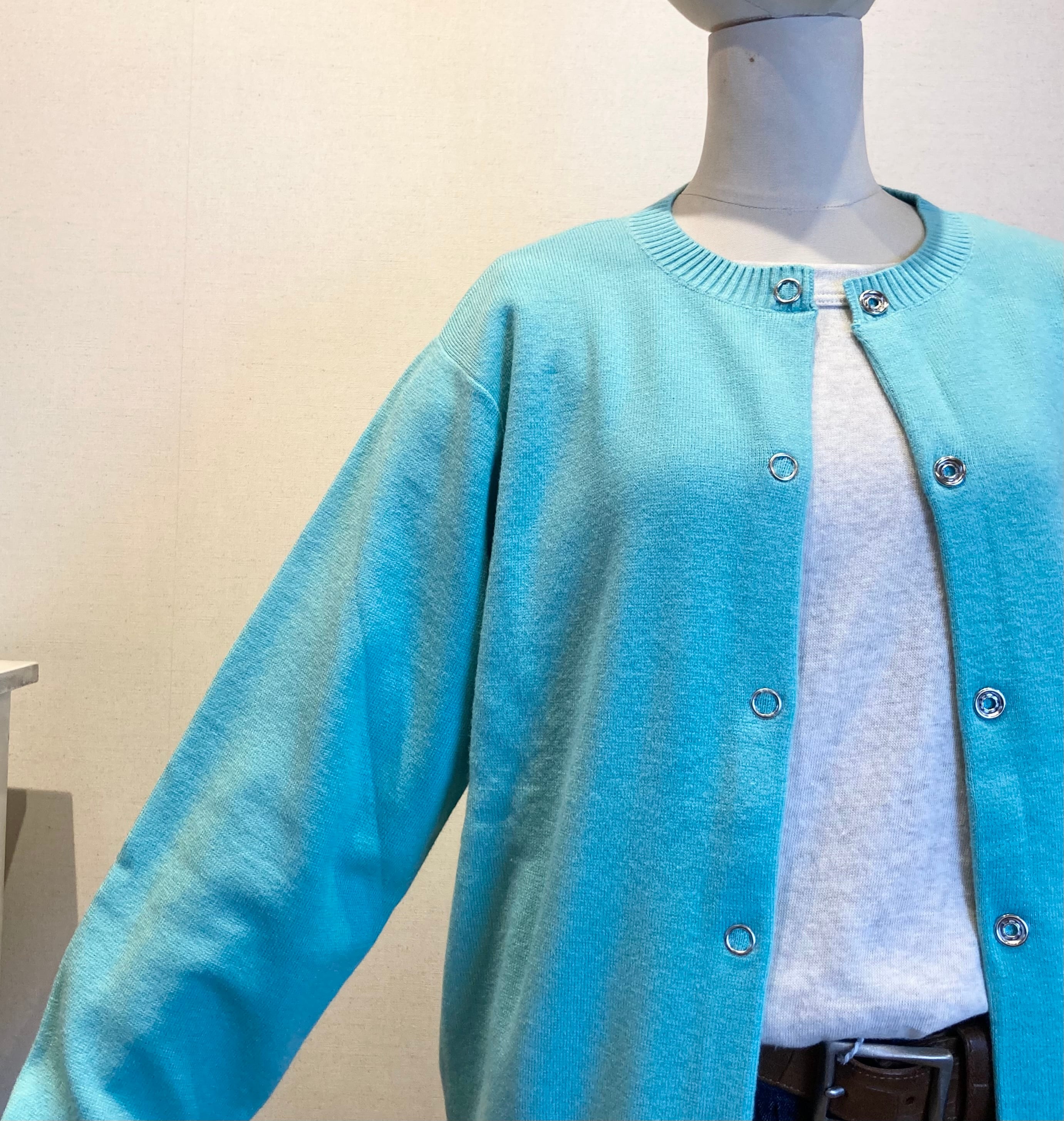クルーネック、ドットリング釦、左右両サイドにポケットが付き使いやすい仕様です
