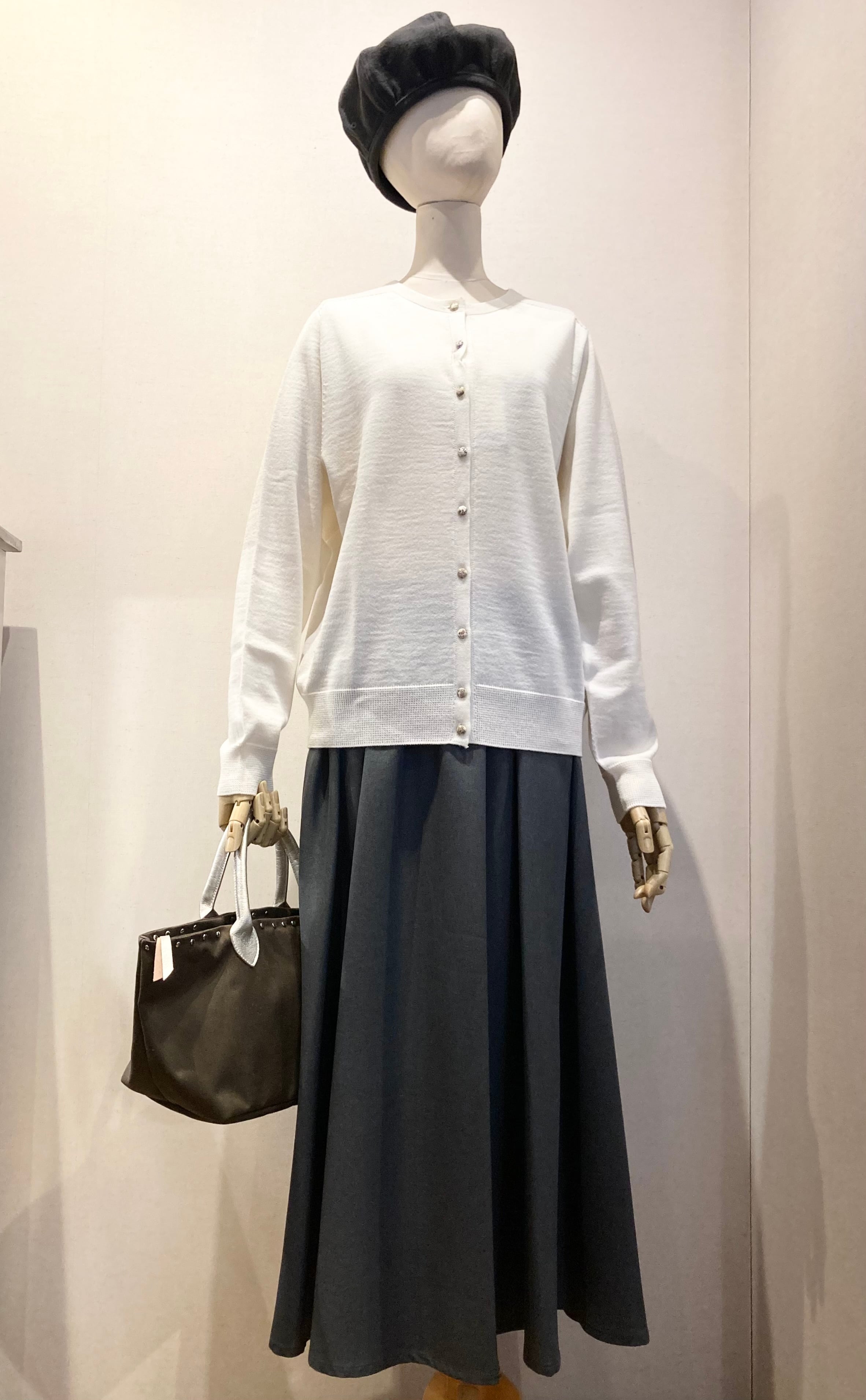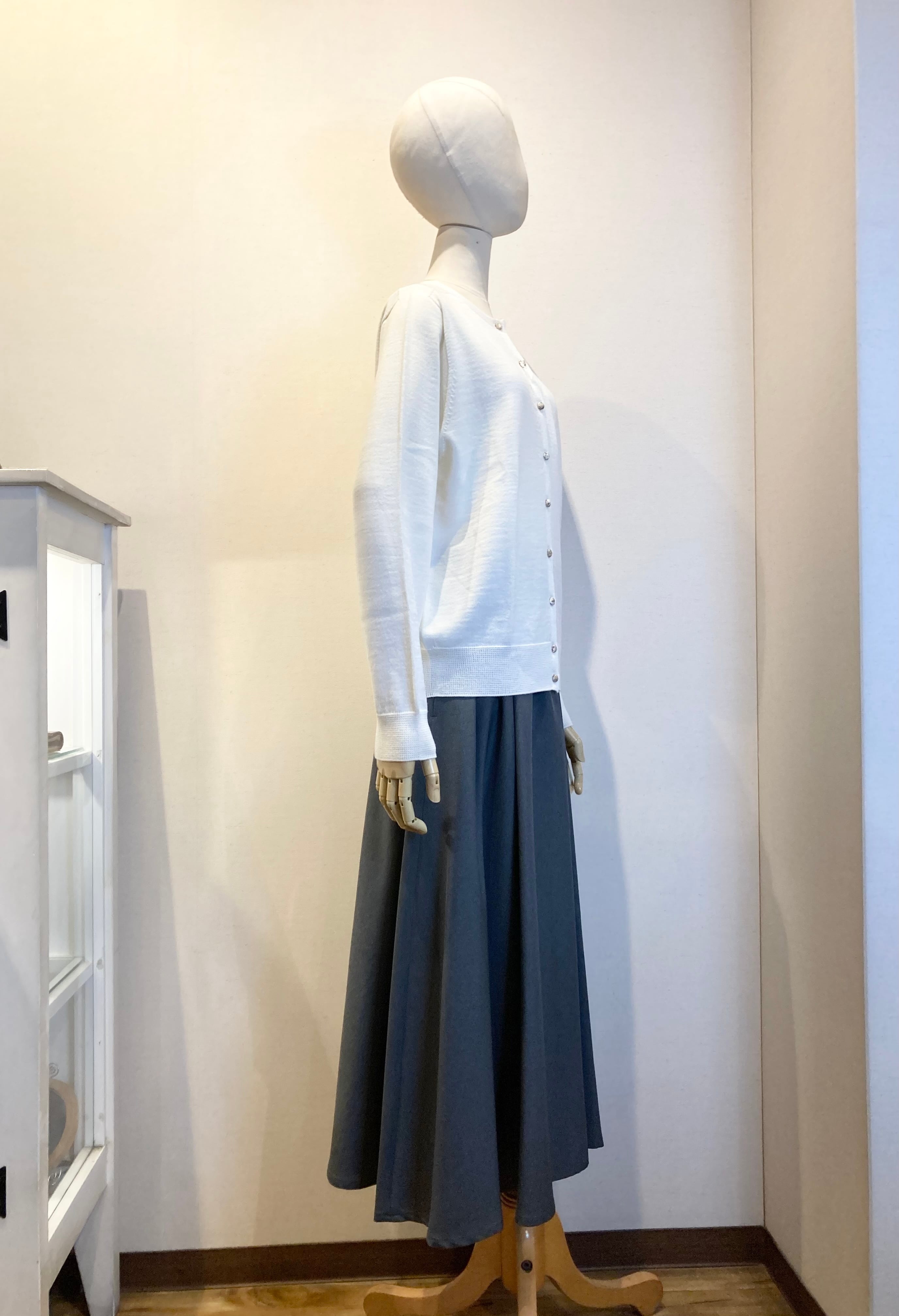 サラッとしたポリエステルリノン素材を使用したフレアギャザースカート…
