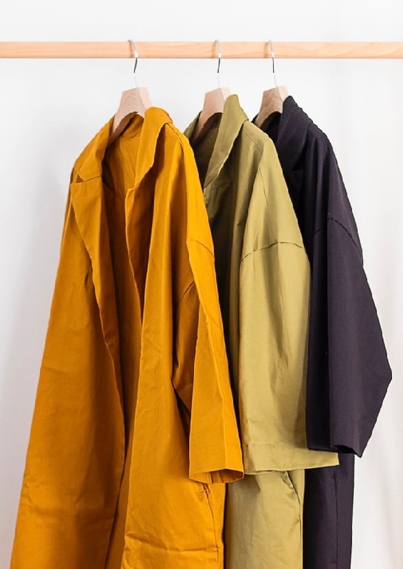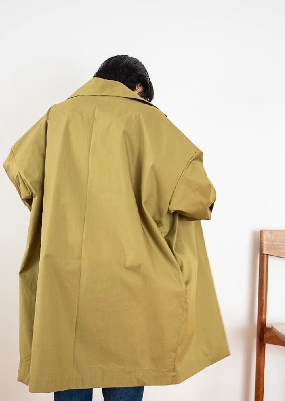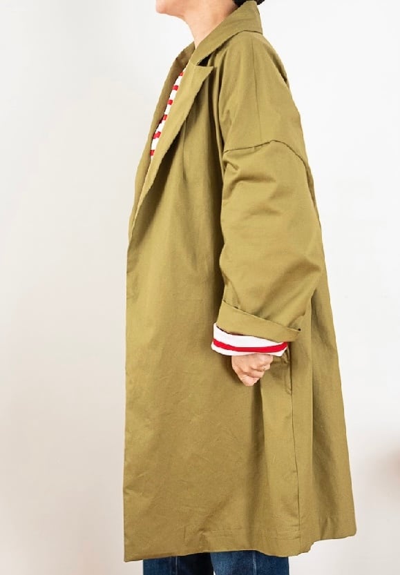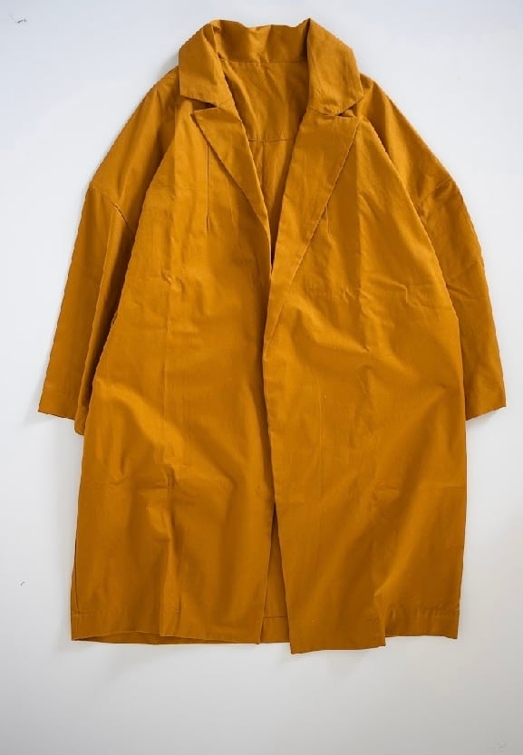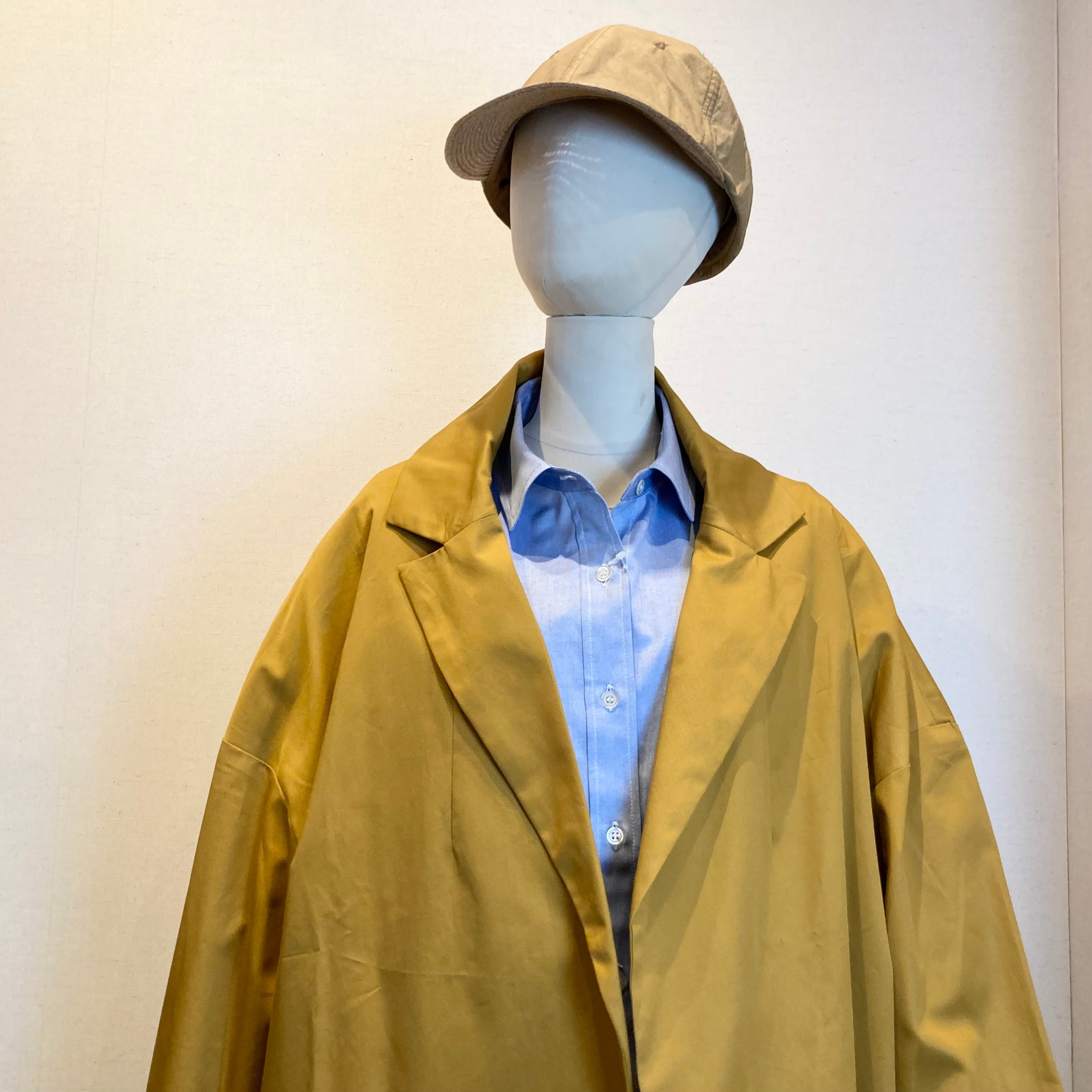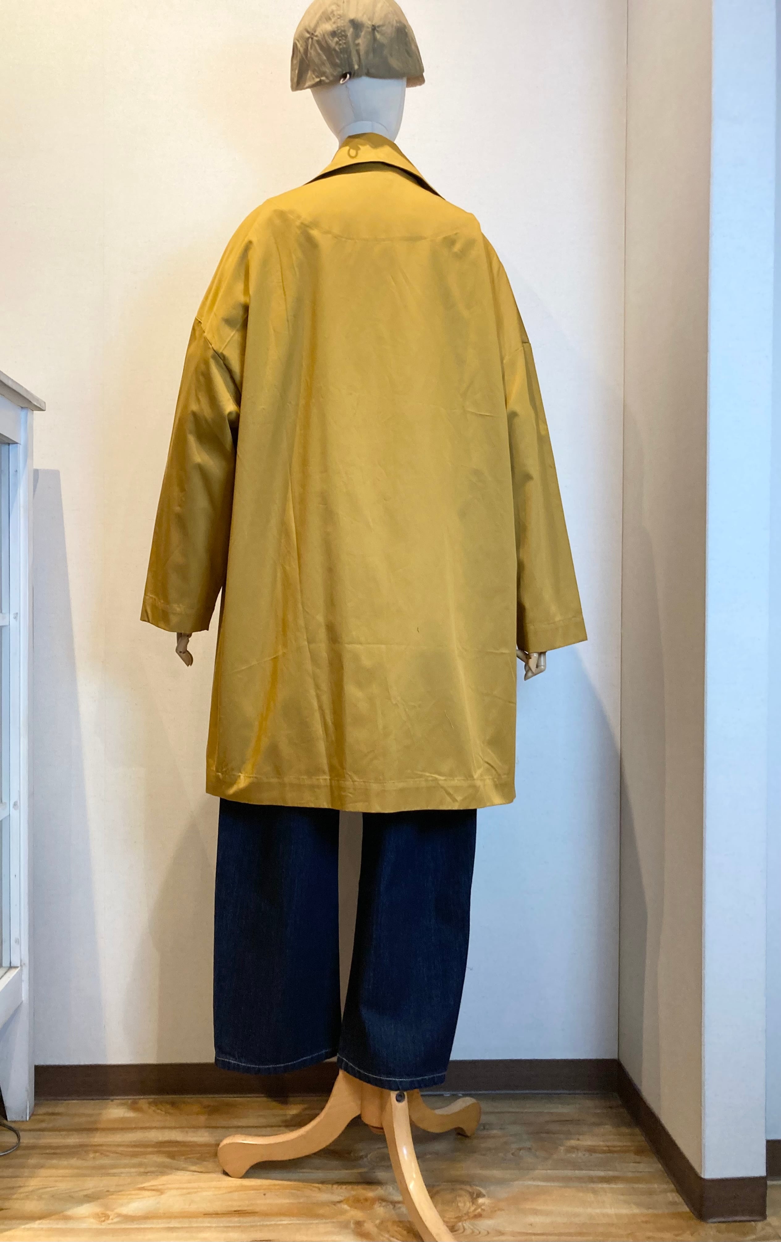 薄手のコットンツィル素材で光沢感ある生地を使用したチェスターコート…