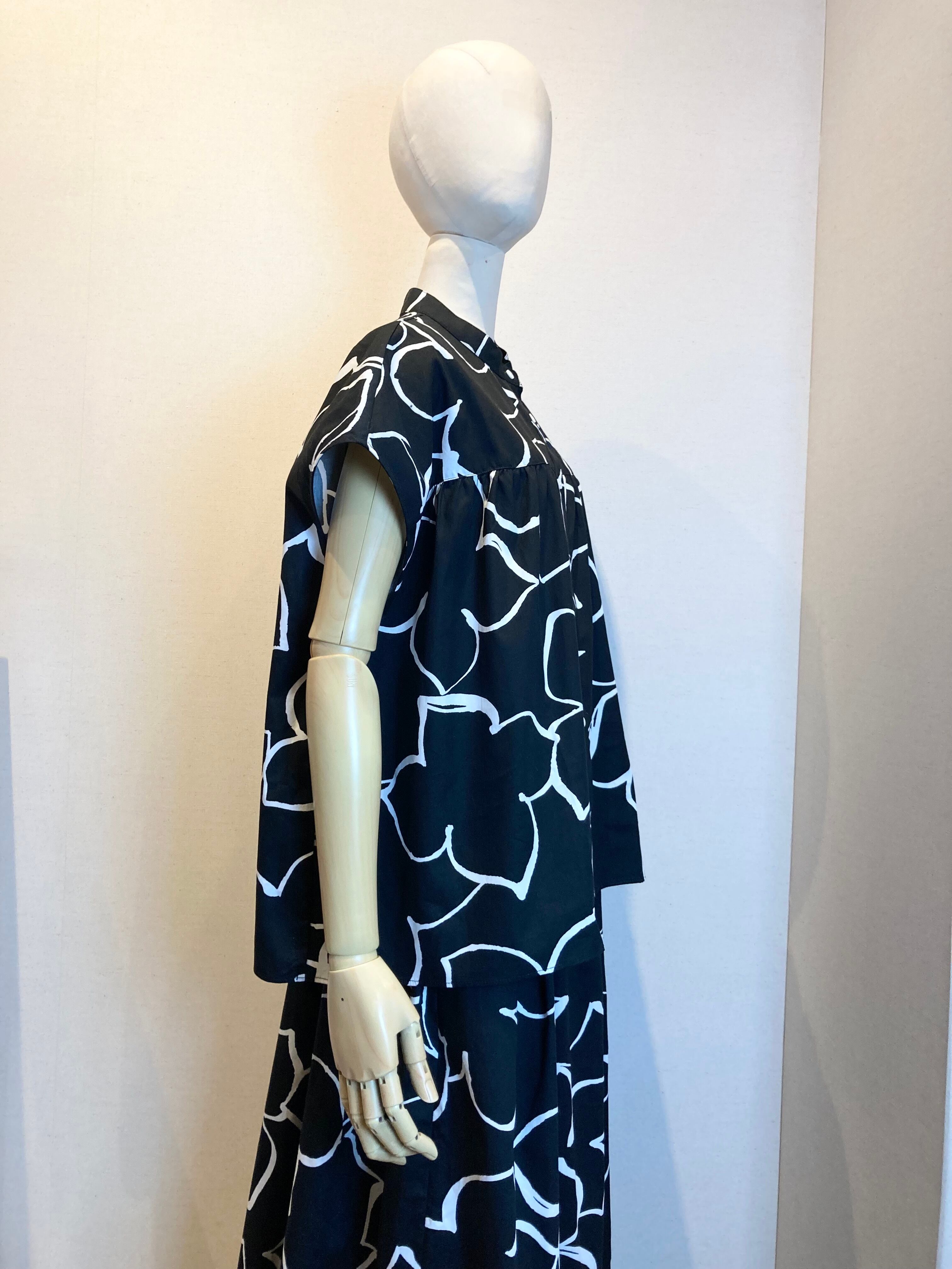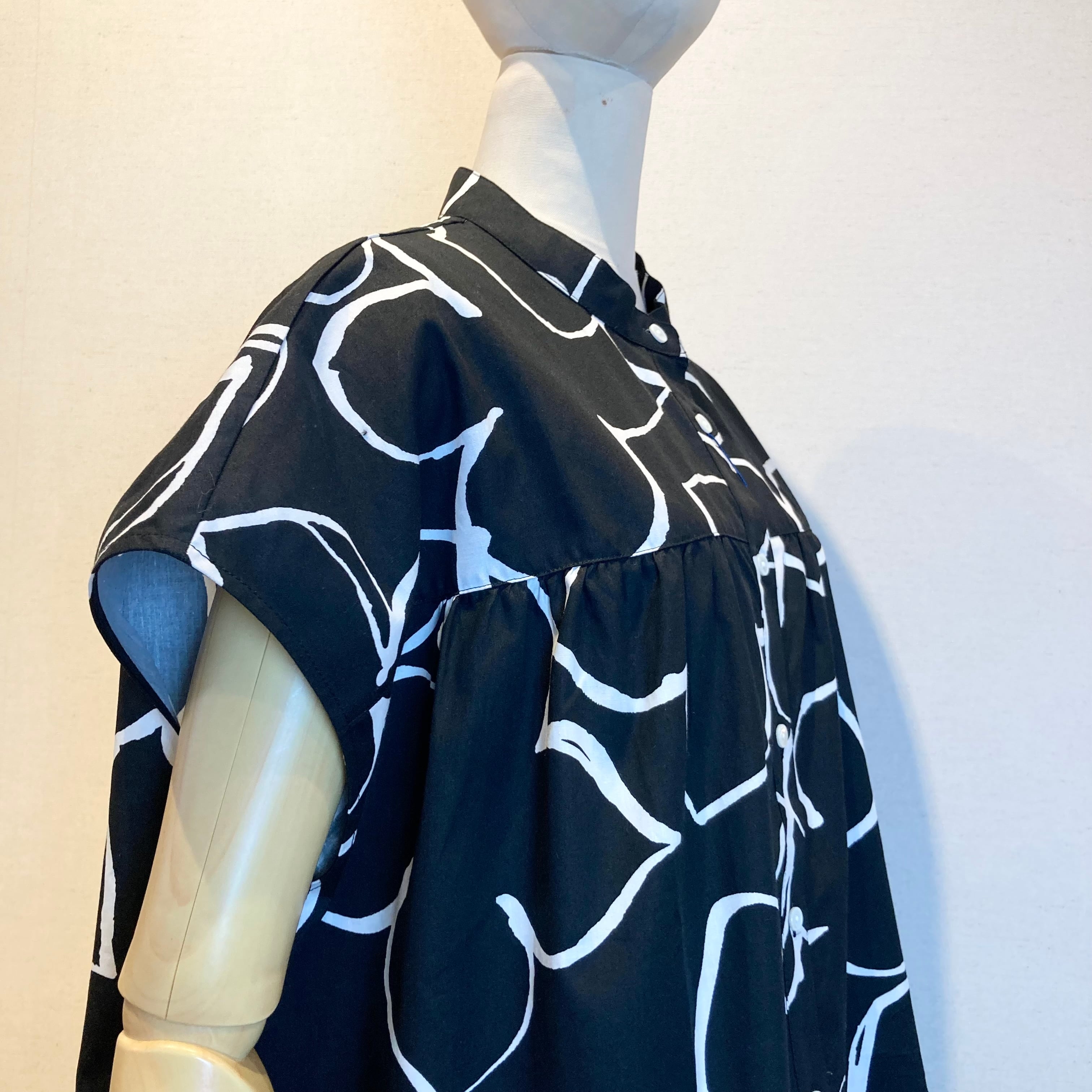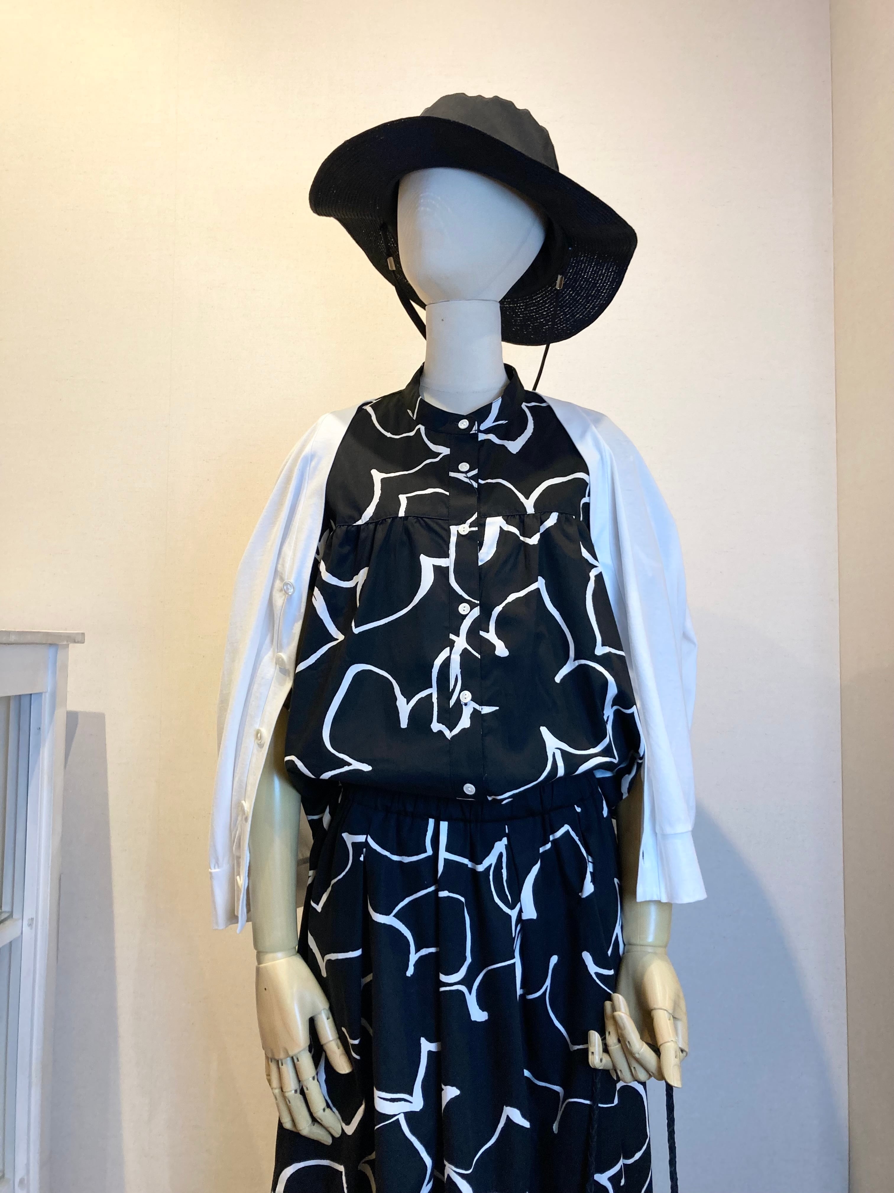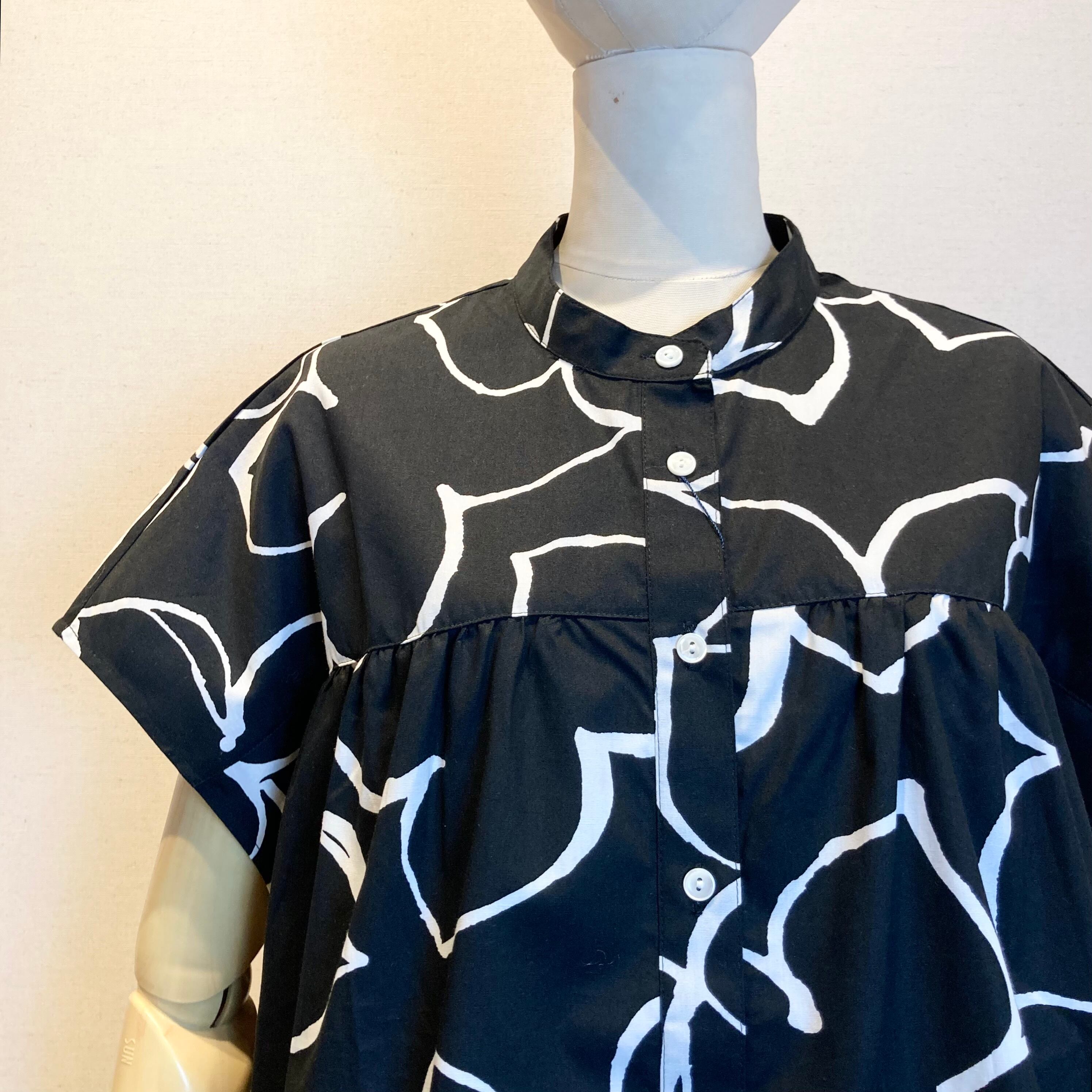 monotone flower french blouse