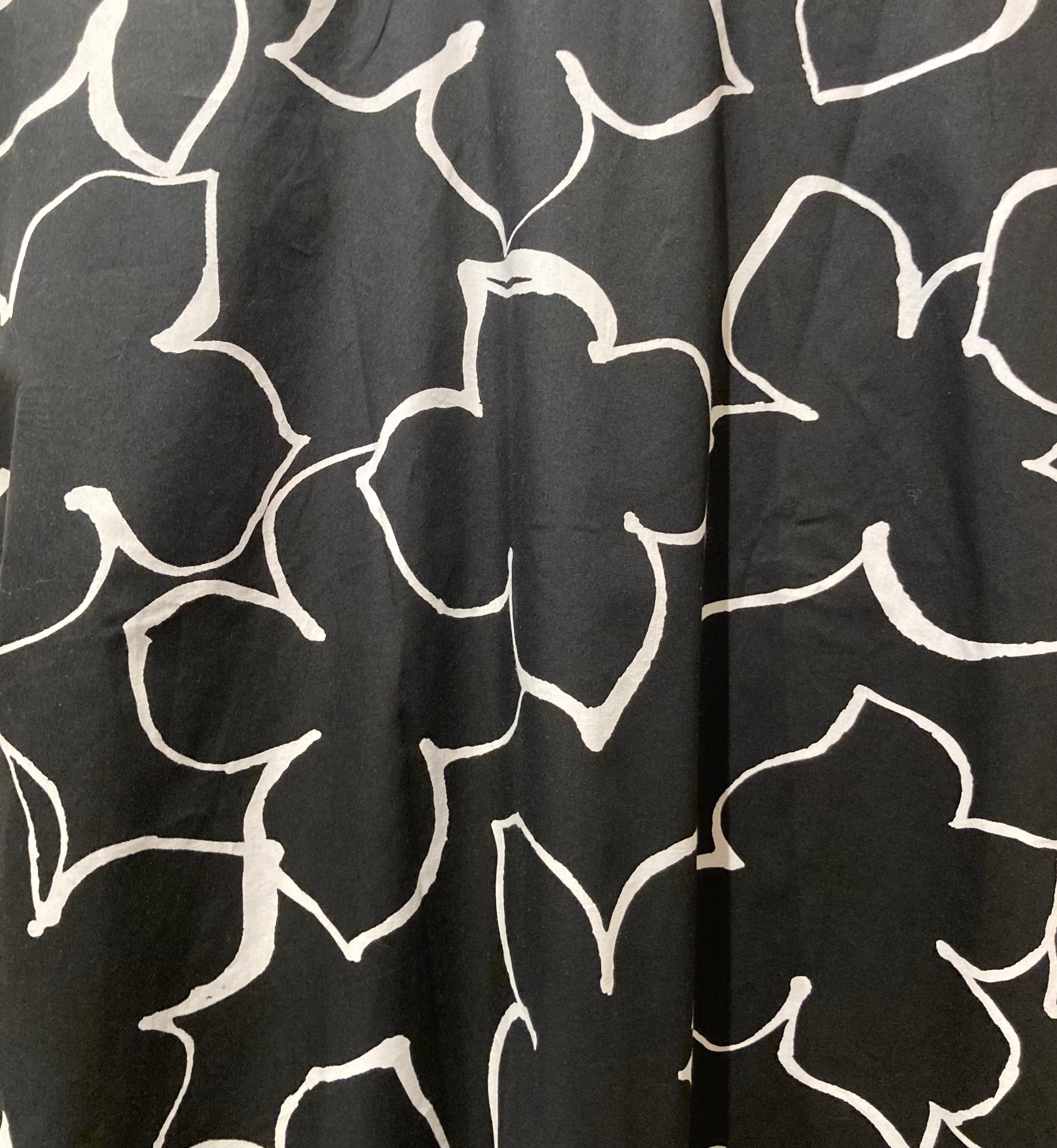 大きめの花柄の輪郭をペイントした生地を