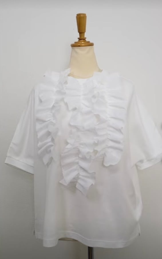 前身頃にタタミフリルデザインを施した