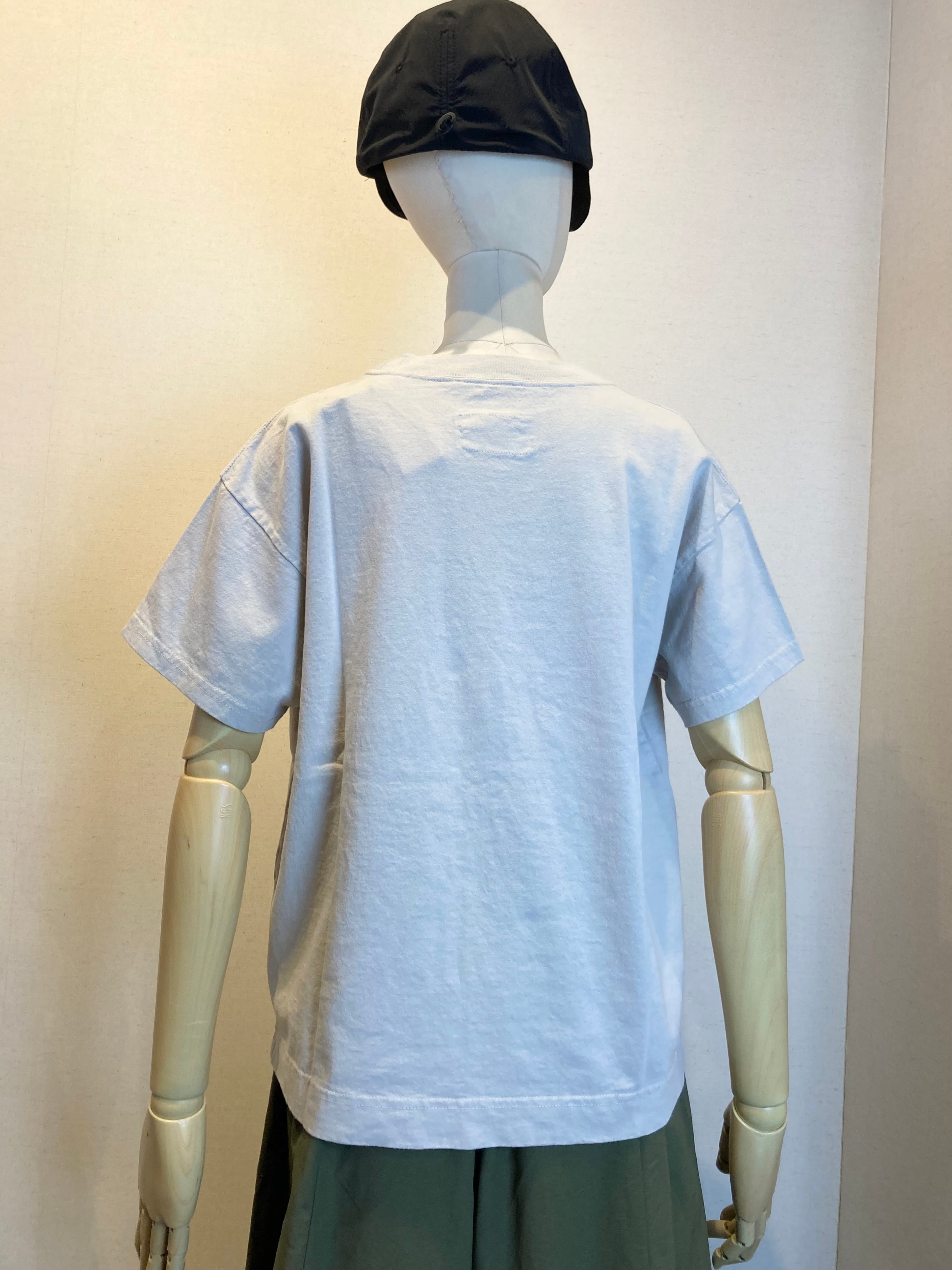 シンプルなTシャツの胸元には