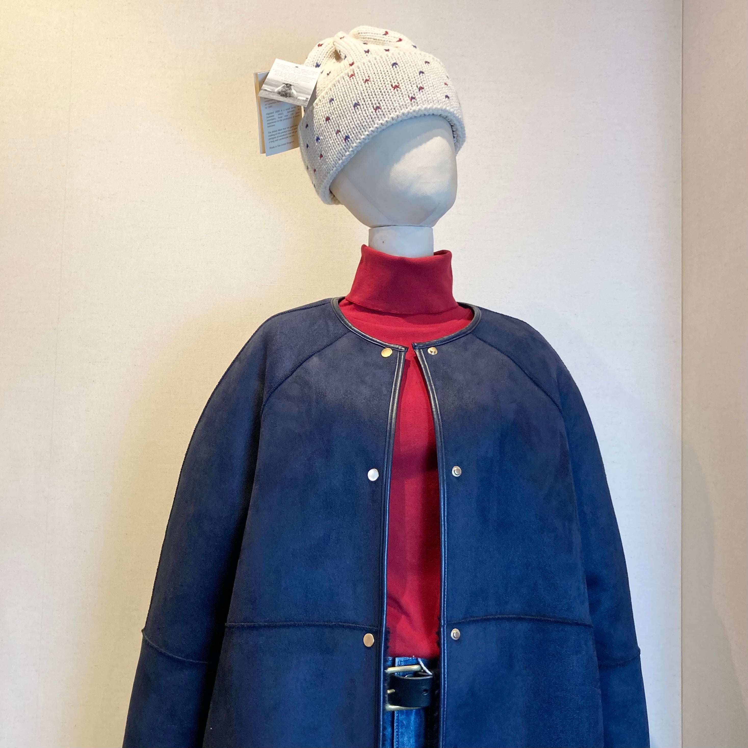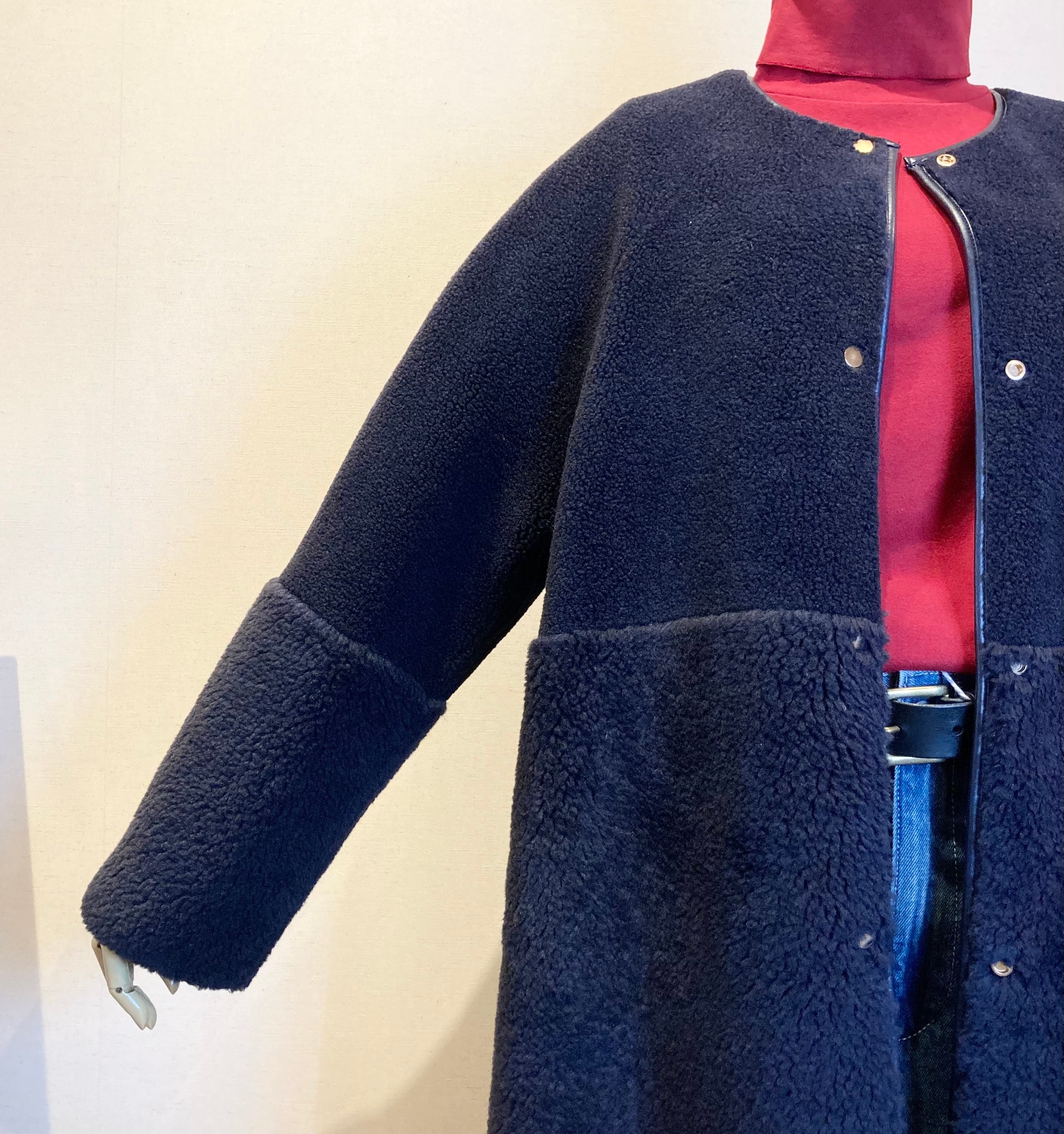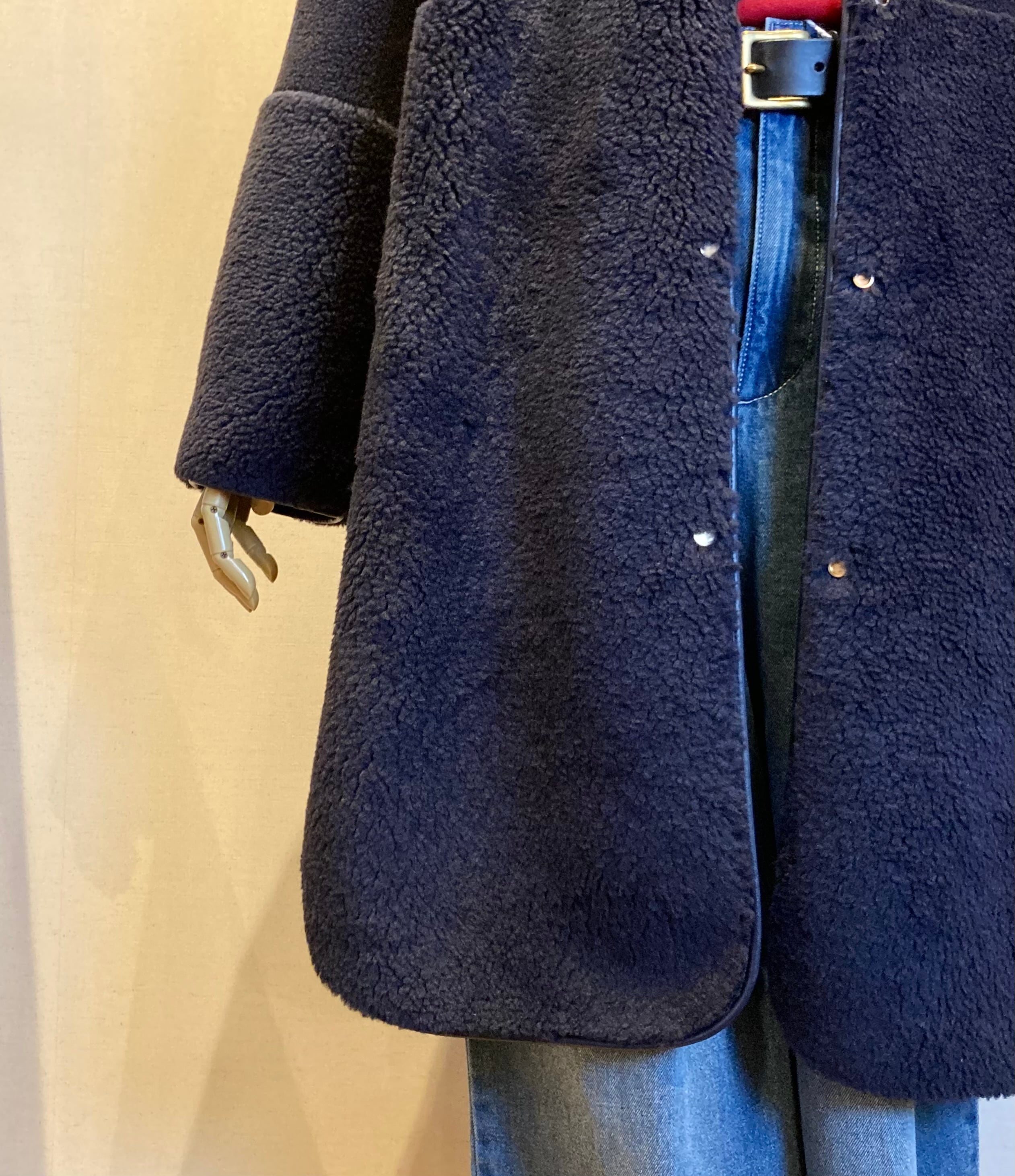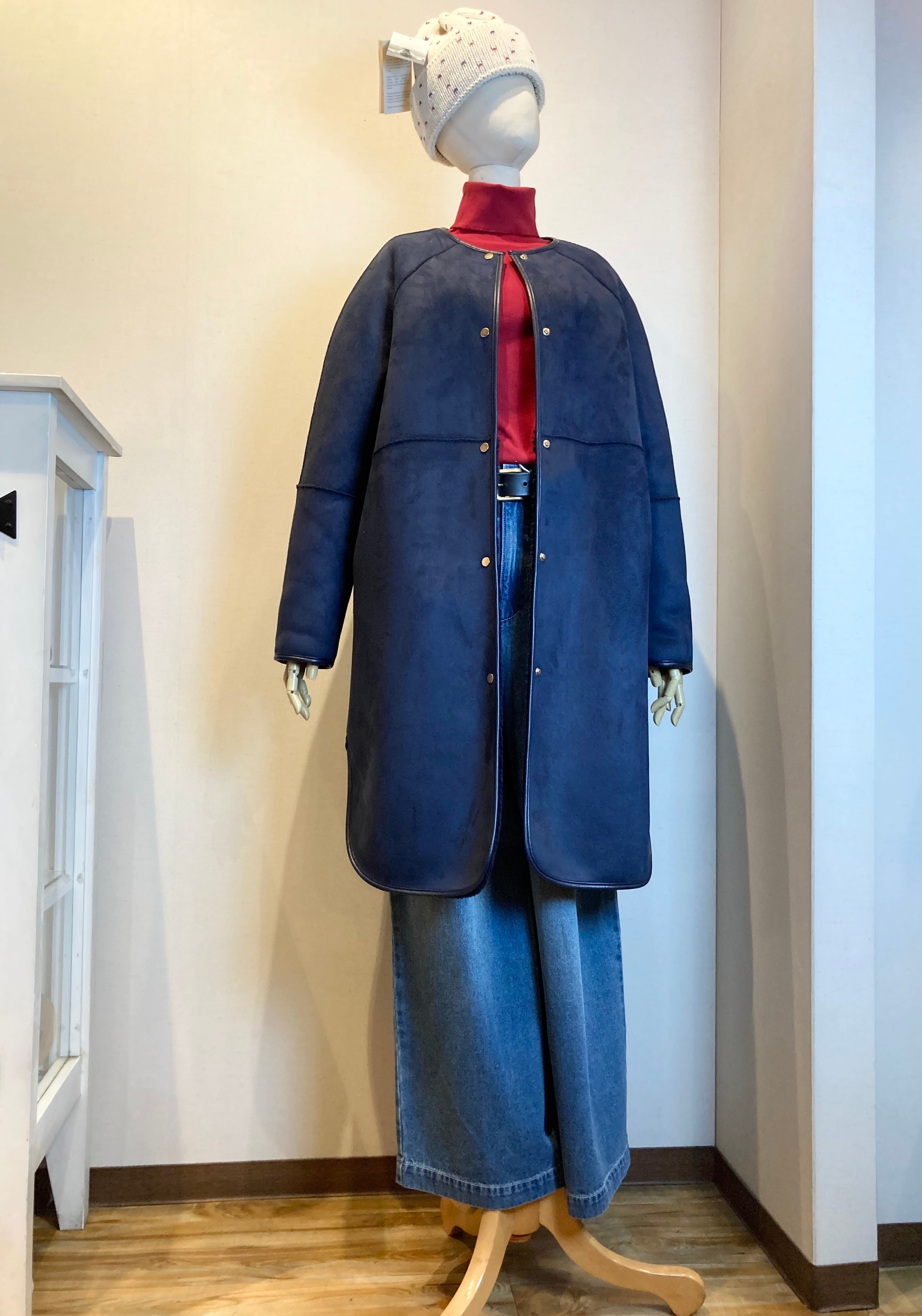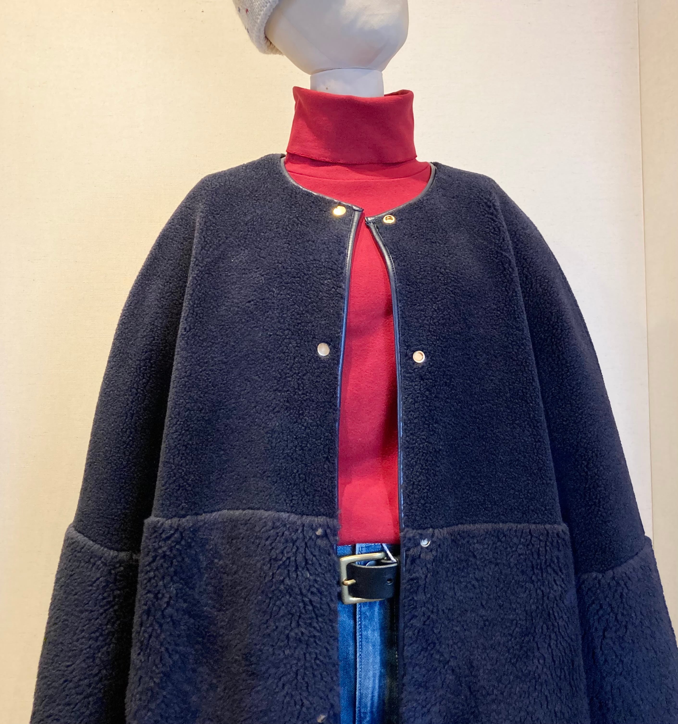 襟元、袖口、裾には合皮のパイピングが施され前立てに5つの凹凸ホック釦が付き